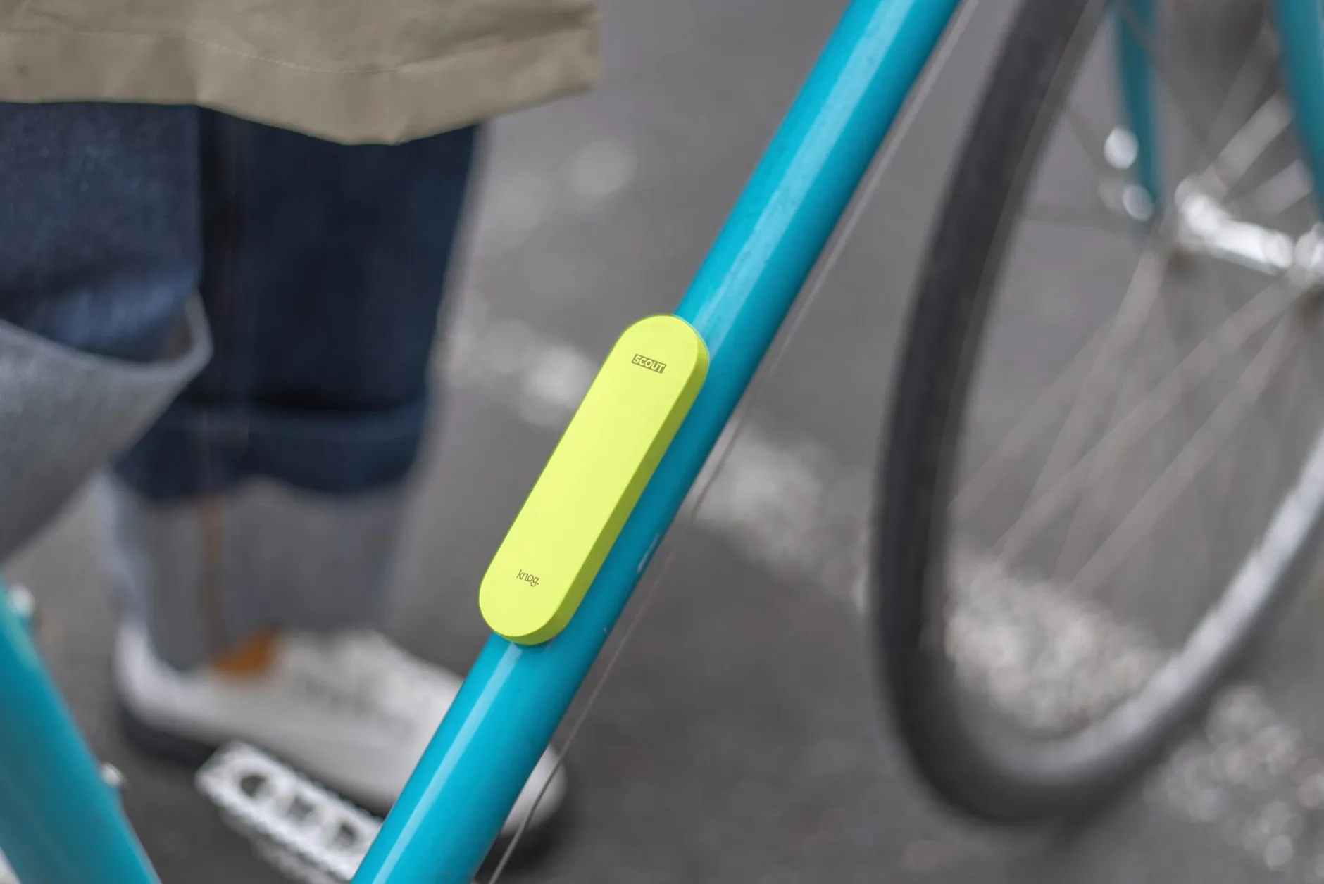 Das kleine Gerät wird direkt am Fahrradrahmen an der Befestigungsmöglichkeit für Trinkflaschen-Halterungen – gegebenenfalls zusammen mit dieser – montiert und ist zusätzlich mit einer signalgelben Kappe zu versehen, falls man auf diese Art der optischen Abschreckung setzen möchte. Eine verdeckte USB-C-Ladebuchse sorgt für eine bis zu sechsmonatiger Akkuladung. Mit integrierter LED-Anzeige für Alarmbereitschaft, Pairing und Batteriestand.