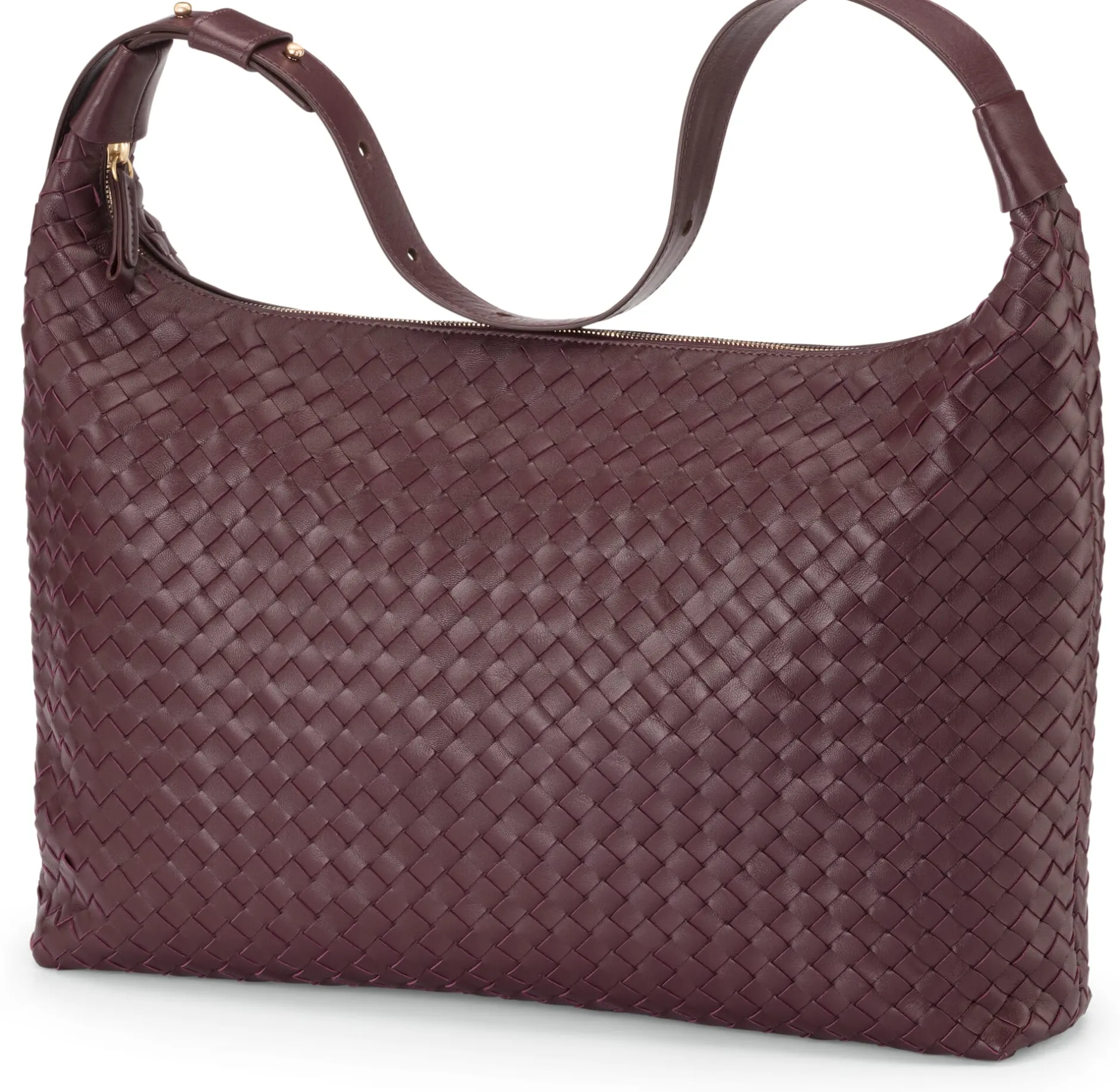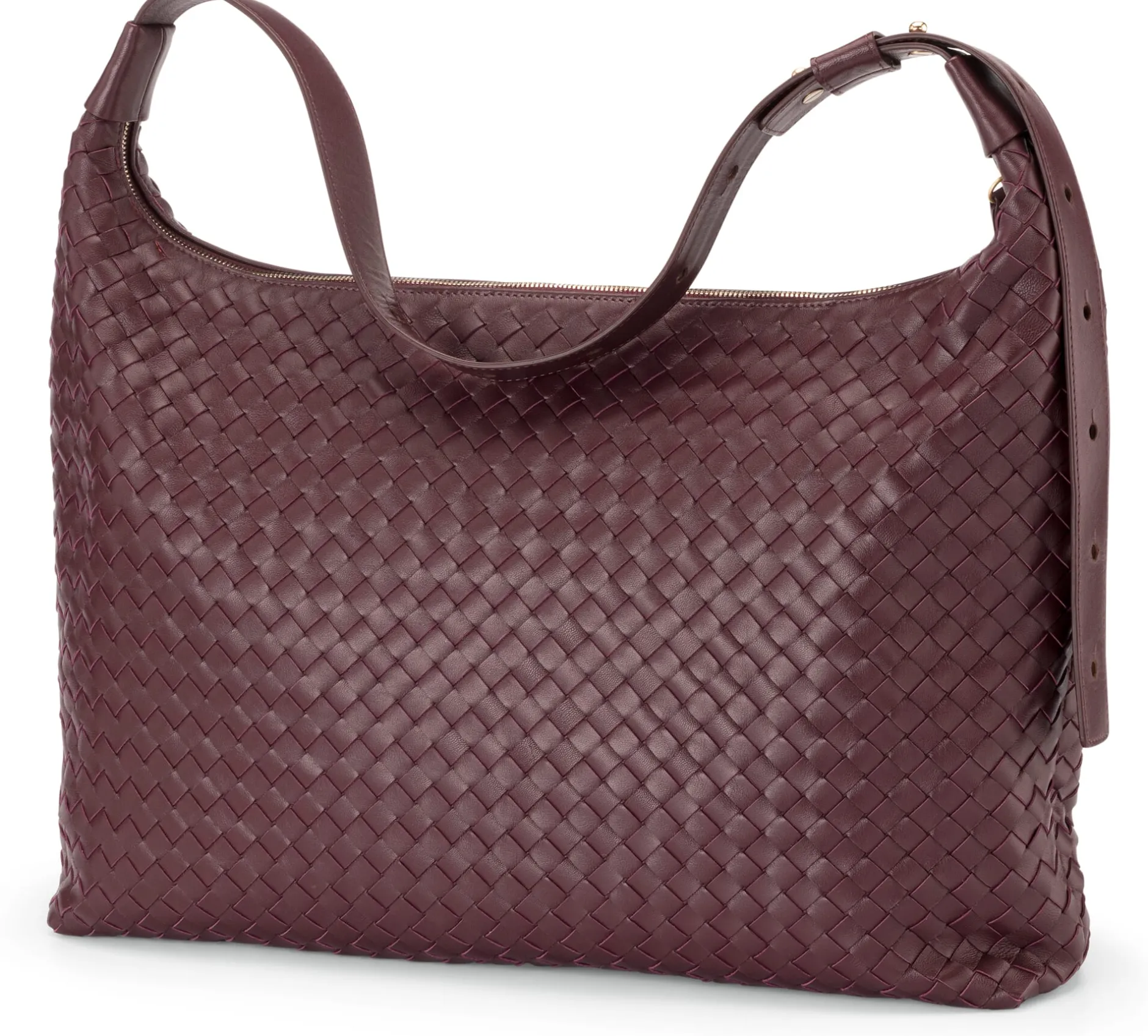 Büro- oder Abendtasche, Hobo oder Shopper, lässig in der Hand, bequem auf der Schulter oder sportlich crossbody getragen – mit ihrer Vielseitigkeit macht es Ihnen diese Tasche aus dem Hause Allan K leicht, sie um sich haben zu wollen. Versiert von Hand aus geschmeidigen Schaflederstreifen geflochten, wird sie Ihnen in jedem Fall mit geduldiger Tragfähigkeit zu stilvollen Diensten sein. Ihrer Größe und Geräumigkeit nach übernimmt sie gern schon einmal die Rolle einer kleineren Shopping- oder Messengerbag, die weder den raschen Mittagspauseneinkauf noch die Aufnahme eines Laptops scheut. Der Übergang von Taschenkörper zum Schulterriemen nimmt stilistische Anleihen bei der klassischen Hobo und geriert sich daher sehr stabil. Über den mittels Kugelknopfsystem längenverstellbaren Gurt verwandeln Sie die Tasche schnell und einfach von der legeren Hand- in die elegante Schulter- oder sportlichere Crossbodybag. Indem sich der Reißverschluss über die gesamte Taschenbreite öffnen lässt, erleichtert er Ihnen zum einen das Verstauen selbst sperriger Utensilien und verschafft zum anderen einen raschen Überblick über den Inhalt. Mithilfe von zwei Einsteckfächern einerseits und einem ledergefassten Reißverschlussfach andererseits ordnet das Tascheninnere die kleinsten Ihrer Utensilien und hält sie für den schnellen Zugriff bereit.