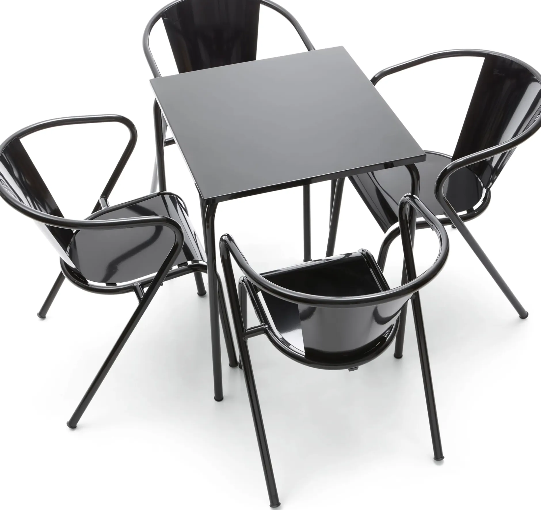 Portugiesische Ikone: Seit den 1950er-Jahren produziert und aus dem öffentlichen Bild Portugals nicht wegzudenken ist dieser schöne Stuhl aus Stahl, wetterfest pulverbeschichtet. Dank seiner Formgebung und seinem leicht abfallenden Sitzwinkel sitzt man in ihm sehr komfortabel und entspannt – nicht nur beim Café Galão. Schöne Sitzgelegenheit für den Ess-, Lese- und Sonnenplatz. In der Auswahl an attraktiven Farben verbirgt sich hinter den Versionen Perlweiß, Taubenblau und Blassgrün eine Besonderheit: Sie gehören zu den Farben, die die Stadtverwaltung Lissabons als Farben zur öffentlichen Bestuhlung freigegeben hat.