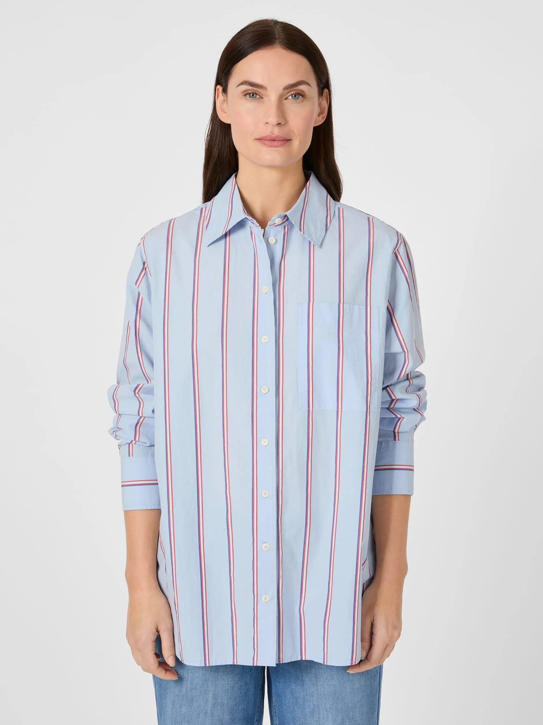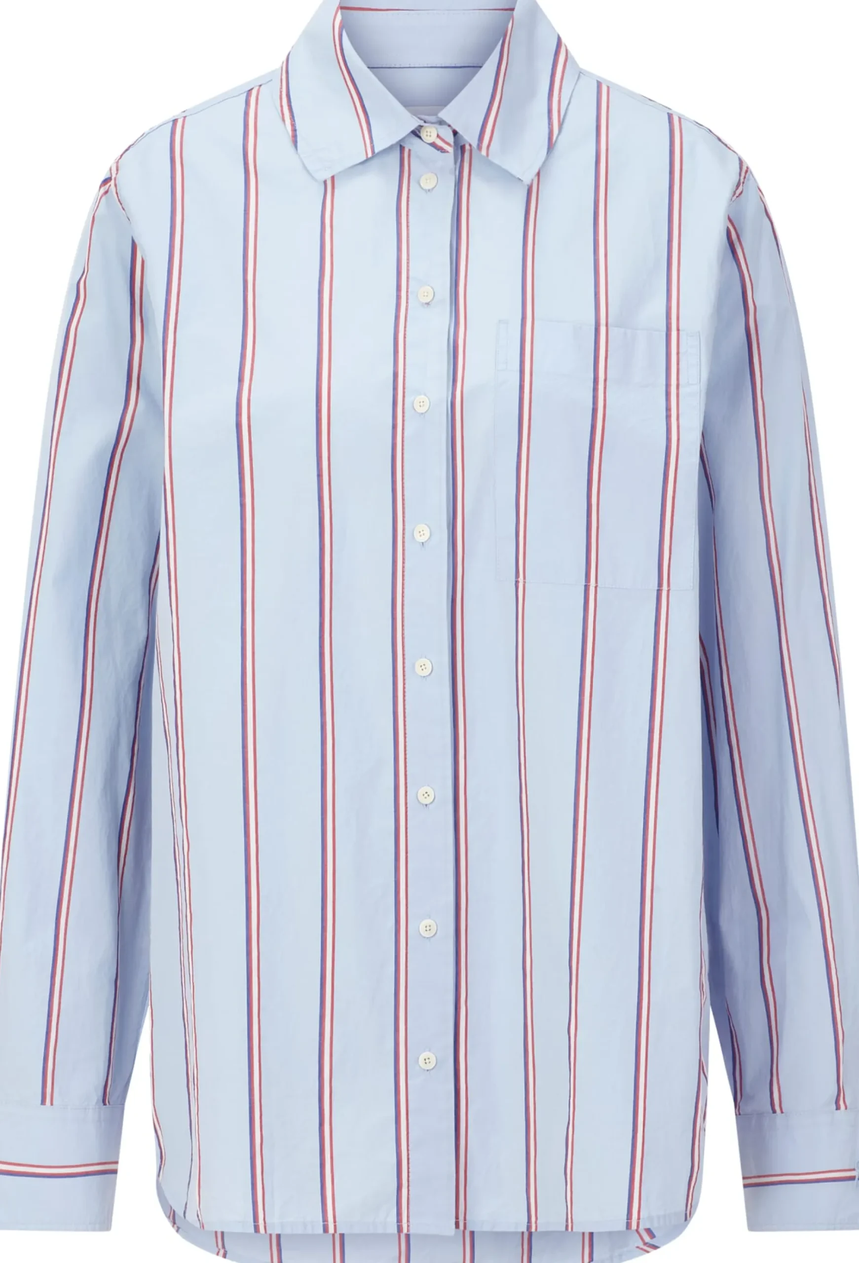 Die feinen, mehrfarbigen Streifen verleihen dieser Hemdbluse einen frischen, lebendigen Look. Armedangels fertigt sie aus kontrolliert biologisch angebauter Baumwolle, was sie hautsympathisch und atmungsaktiv macht. Die lockere Passform und eine Quetschfalte unter der Schulterpasse sorgen für einen bequemen, lässigen Sitz und viel Bewegungsfreiheit. Ausgestattet ist die Bluse mit einer mustergetreu aufgesetzten Brusttasche und geknöpften Manschetten. Der Saum ist gerundet und hinten länger als vorn.