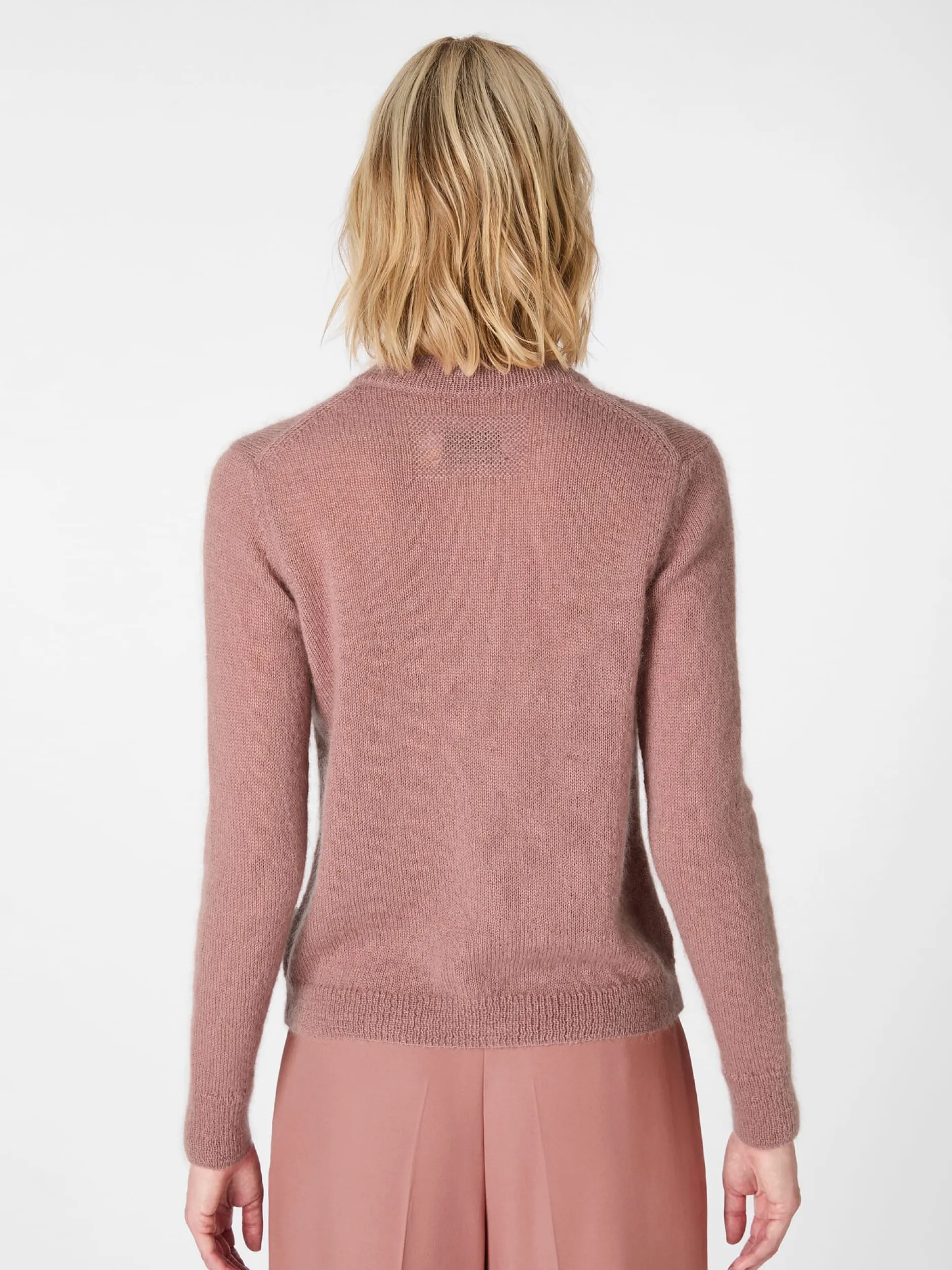 64% Wolle, 36% Mohair. Papierknöpfe. Hergestellt in der Türkei. Rückenlänge bei Größe M = 57 cm.