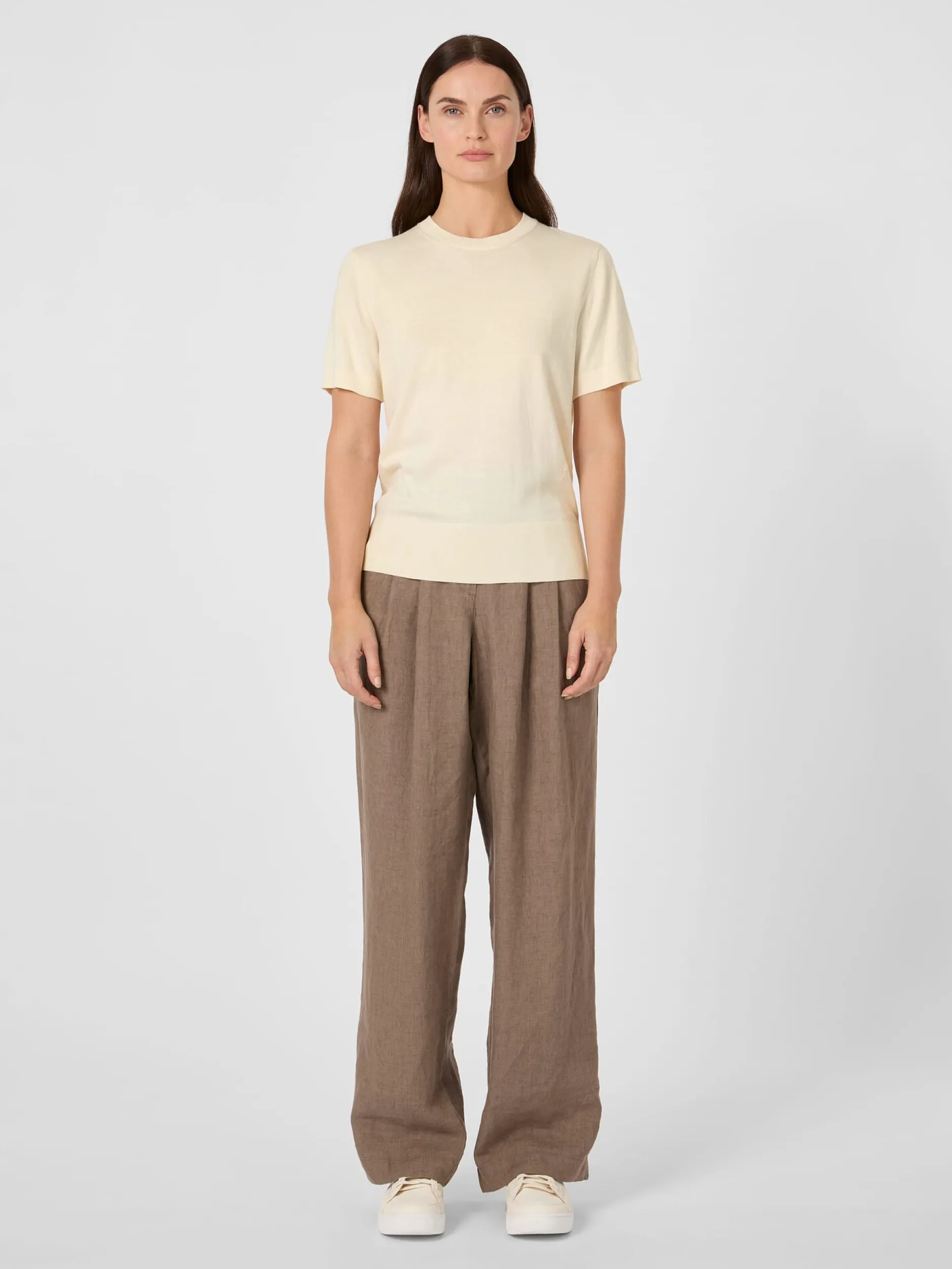 Das hautsympathische und schmiegsame Gestrick dieses Shirts besteht aus kontrolliert biologisch angebauter Baumwolle und Modal (TENCEL™), einer regenerativen Zellulosefaser, die aus natürlich wachsendem Buchenholz gewonnen wird und für ihre außergewöhnliche Weichheit und Flexibilität bekannt ist. Zudem ist die Faser besonders atmungsaktiv, was das Strickshirt zum idealen Begleiter für die warme Jahreszeit macht. Gearbeitet ist es in bequemer, lockerer Passform mit Rundhalsausschnitt und Rippenstrickbündchen an Hals, Ärmeln und Rumpf.