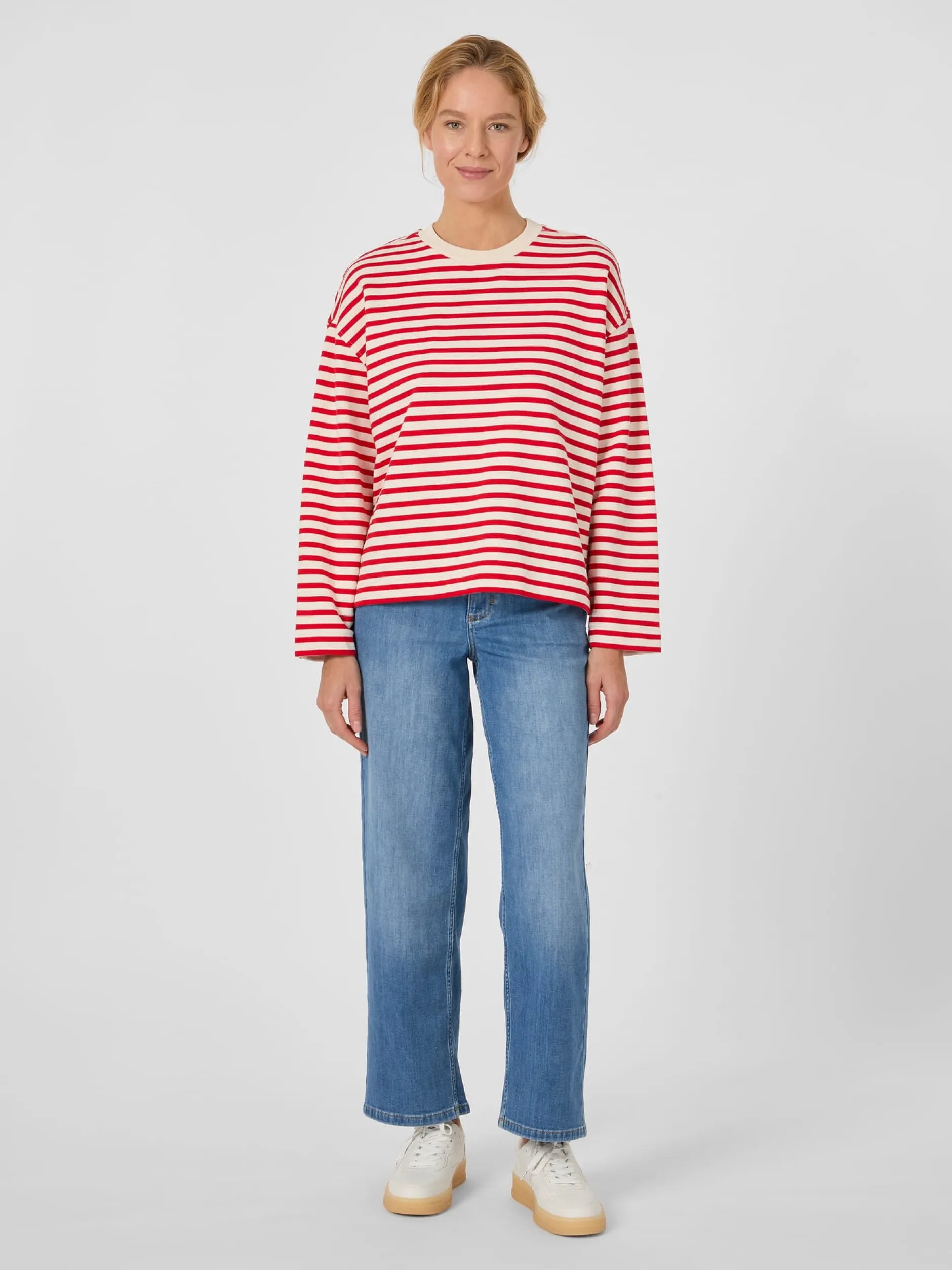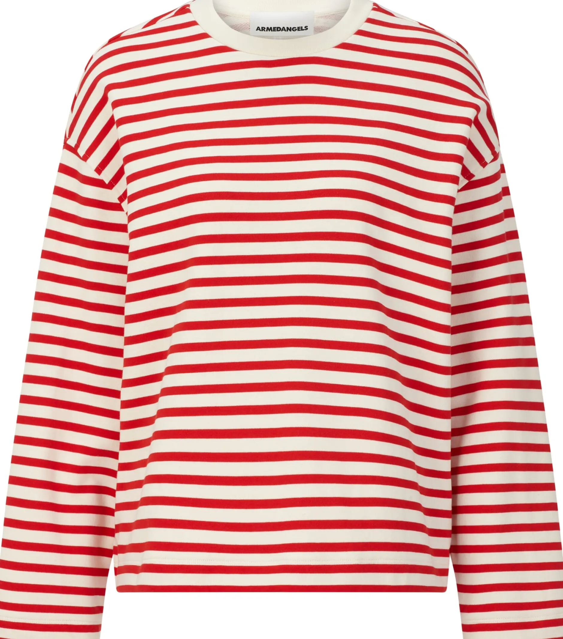 Sweatshirt in frischem, maritimem Stil aus weichem und zugleich griffigem French-Terry-Sweat – einem Stoff, der auch häufig als Sommersweat bezeichnet wird. Es handelt es sich um eine robuste und pflegeleichte Sweatware, die die Eigenschaften eines leichten Single Jerseys mit denen eines schweren Sweatshirt-Stoffs vereint. Daher eignet er sich bestens für die Übergangszeit oder etwas kühlere Sommertage. Armedangels fertigt das Sweatshirt aus kontrolliert biologisch angebauter Baumwolle.