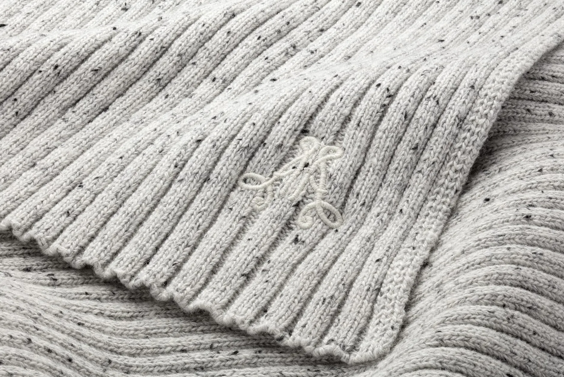 Armedangels fertigt diesen fransenlosen Schal in breitem Rippenstrick aus einer Materialkombination, die zu rund zwei Dritteln aus hautsympathischer, kontrolliert biologisch angebauter Baumwolle und zu rund einem Drittel aus wärmender Wolle besteht. Für eine markante Optik sorgen neben der Strickart kontrastierende Einsprengsel in den Garnen. Das Armedangels-Logo in einer verschlungenen Formgebung ist eingestickt.