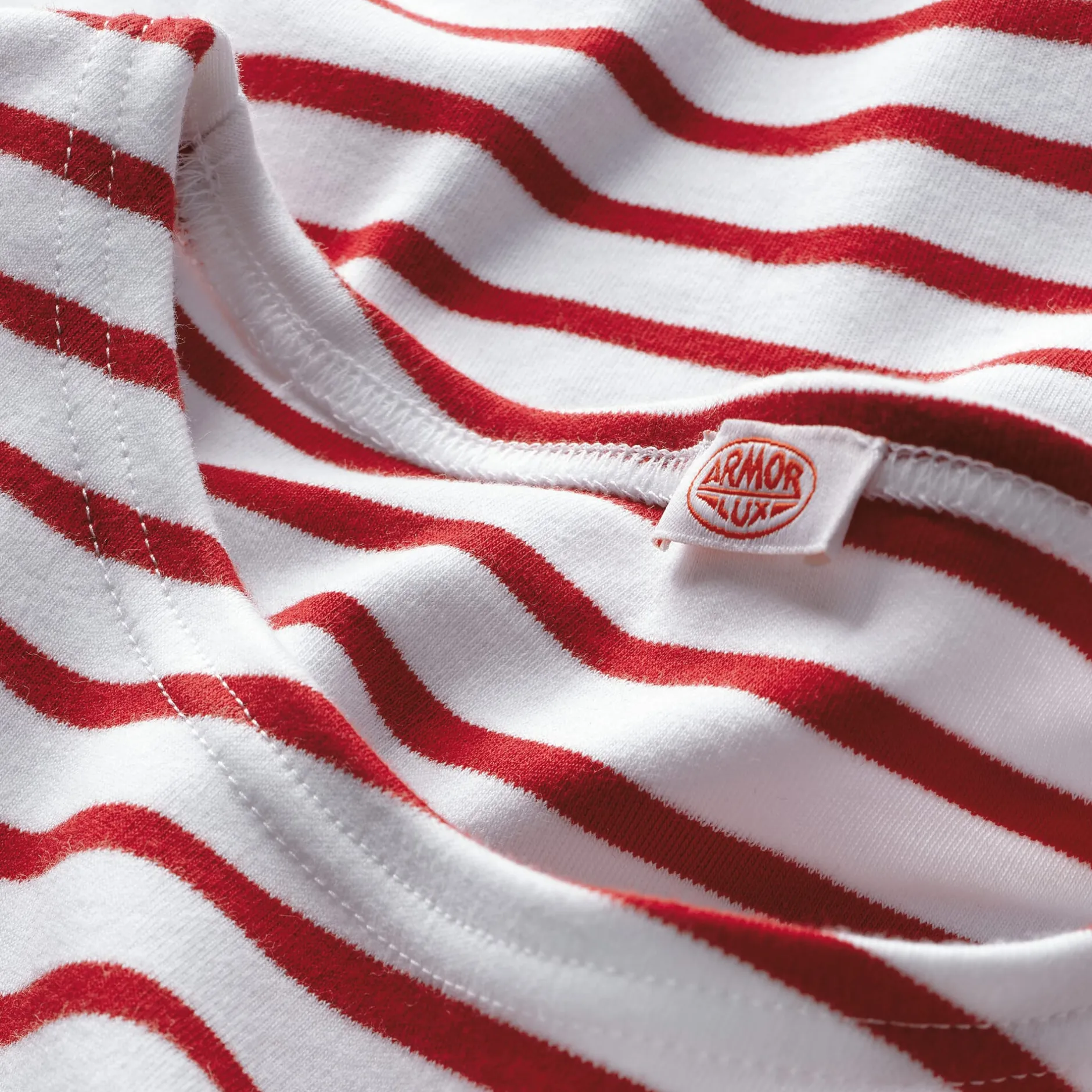 „Armor“ ist in der bretonischen Sprache das Wort für Meer, und mit „lux“ kann ja doch nur das Licht an der Küste gemeint sein. Maritimen Charakter haben jedenfalls bis heute viele der Kleidungsstücke, die Armor lux fertigt – Pullover und Shirts, Kleider, Hosen, Hüte, Mützen und Schals. Der Ende der 1930er Jahre von einem Schweizer in Quimper gegründete Betrieb kombiniert dabei schlichte, bequeme Schnitte, klassische Farben und eine kompromisslose Qualität in Sachen Material und Verarbeitung. Die Produktion erfolgt weitgehend am Stammsitz in Frankreich und zu einem kleinen Teil in eigenen Betrieben in Madagaskar und Tunesien.
