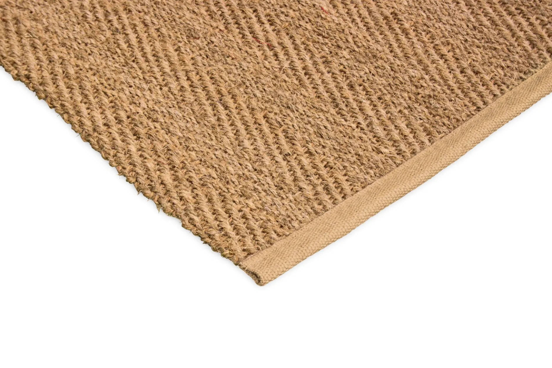 Kokosteppiche haben eine eher raue Oberflächenstruktur; die typischen Unregelmäßigkeiten im Garn sind unvermeidlich.