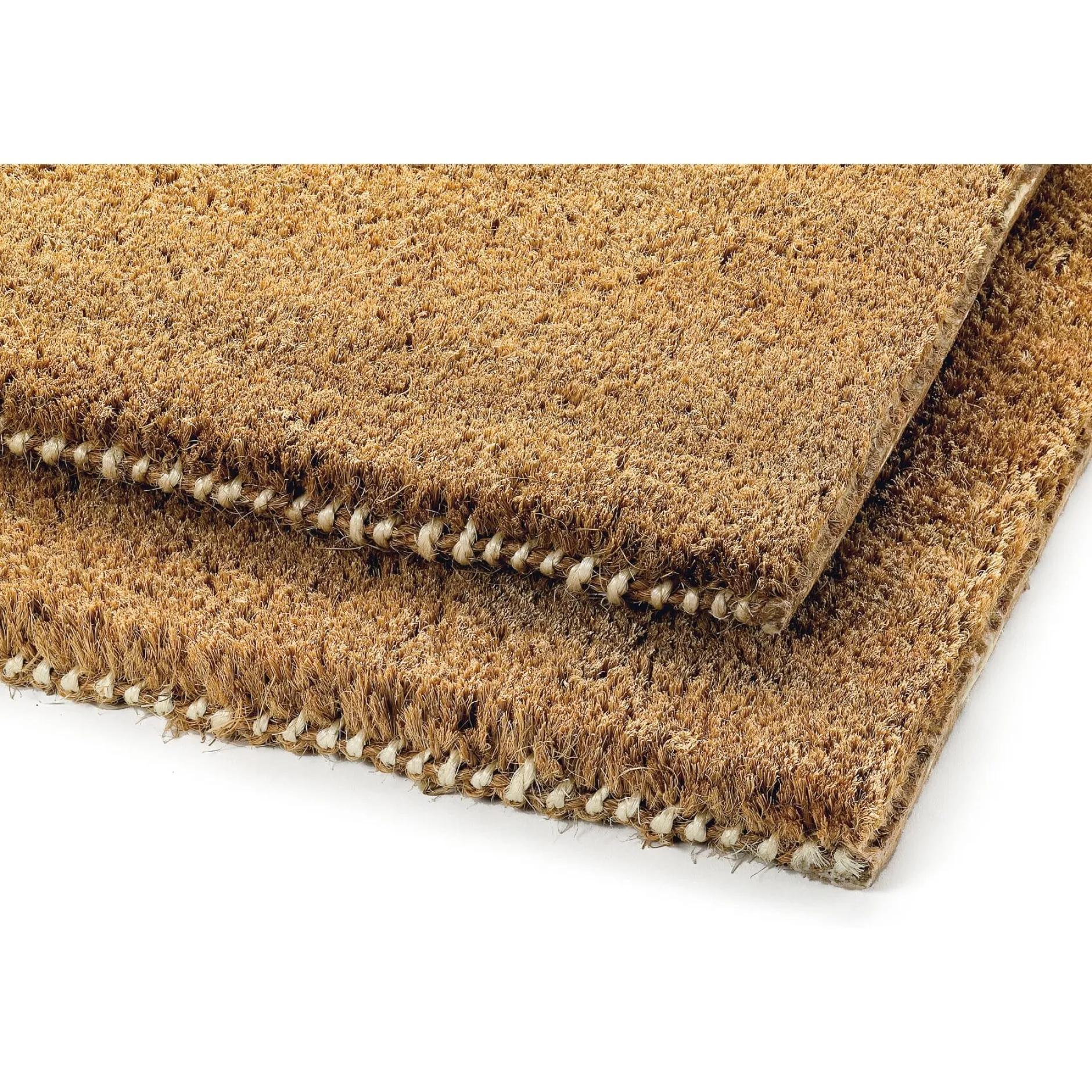 Von der Kokosweberei Schär in der Eifel kommen diese Türmatten. Die traditionelle Webart in Kokos-Velours Extra Double bringt einen ungemein dichten, rauen Flor hervor, der nicht nur Schmutz, sondern auch Staub zuverlässig auffängt. Schär fertigt sie in zwei Stärken, die auch gröbster Beanspruchung trotzen.
