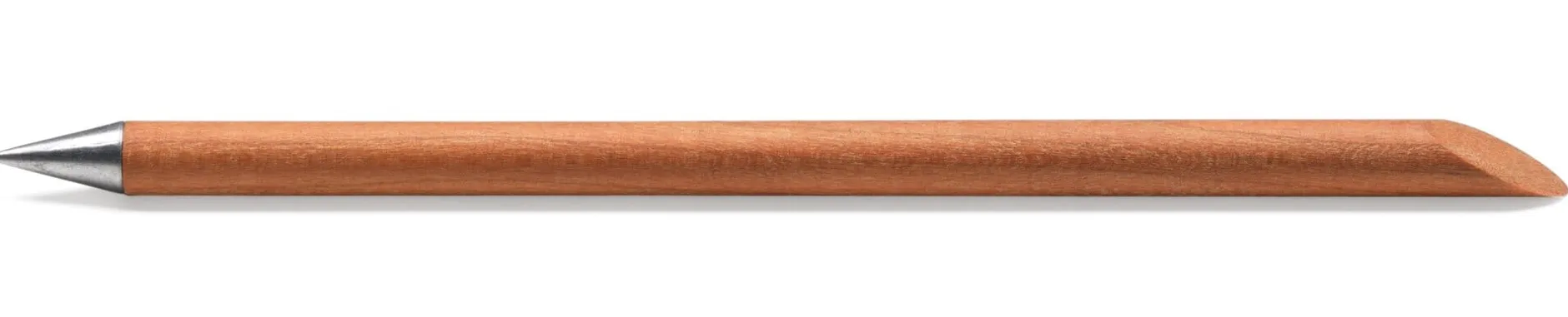 Ein einmal gesetzter Strich lässt sich genauso wenig wegradieren wie ein geschriebenes Wort. Der Stift schult also das genaue Beobachten beim Zeichnen ebenso wie das überlegte Formulieren beim Schreiben. Der Metallminenstift schreibt auf allen Arten von Papier, selbst wenn dieses feucht ist. Allerdings: Wenn er auf Stein-, Betonböden oder Ähnliches fällt, dann ist er kaputt.