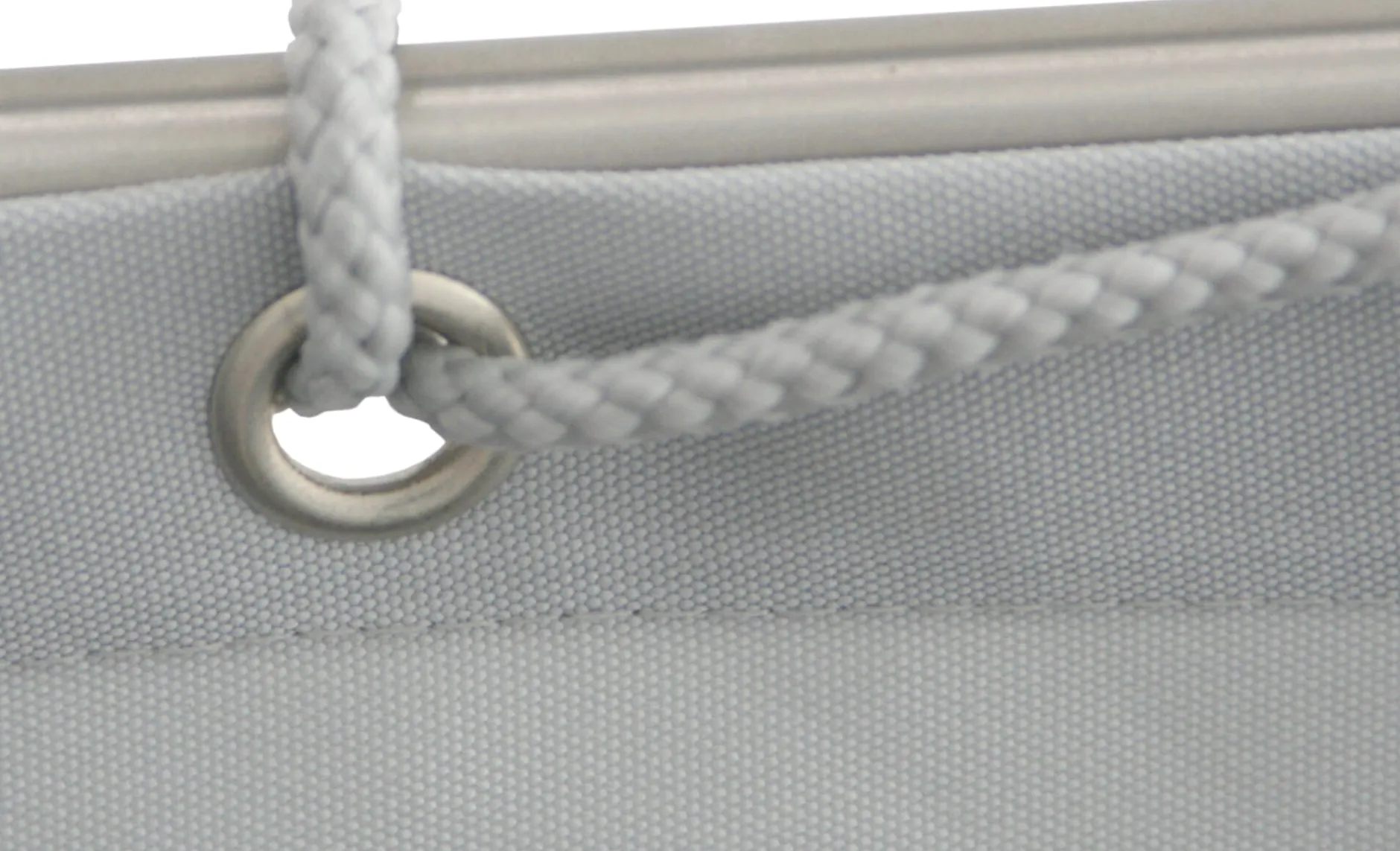 Material: Bespannung: 100 % Polyester antihaftbeschichtet (280 g/m²); Befestigungsschnur: Polypropylen; Ösen: Stahl, verzinkt; maschinenwaschbar bei 40 °C