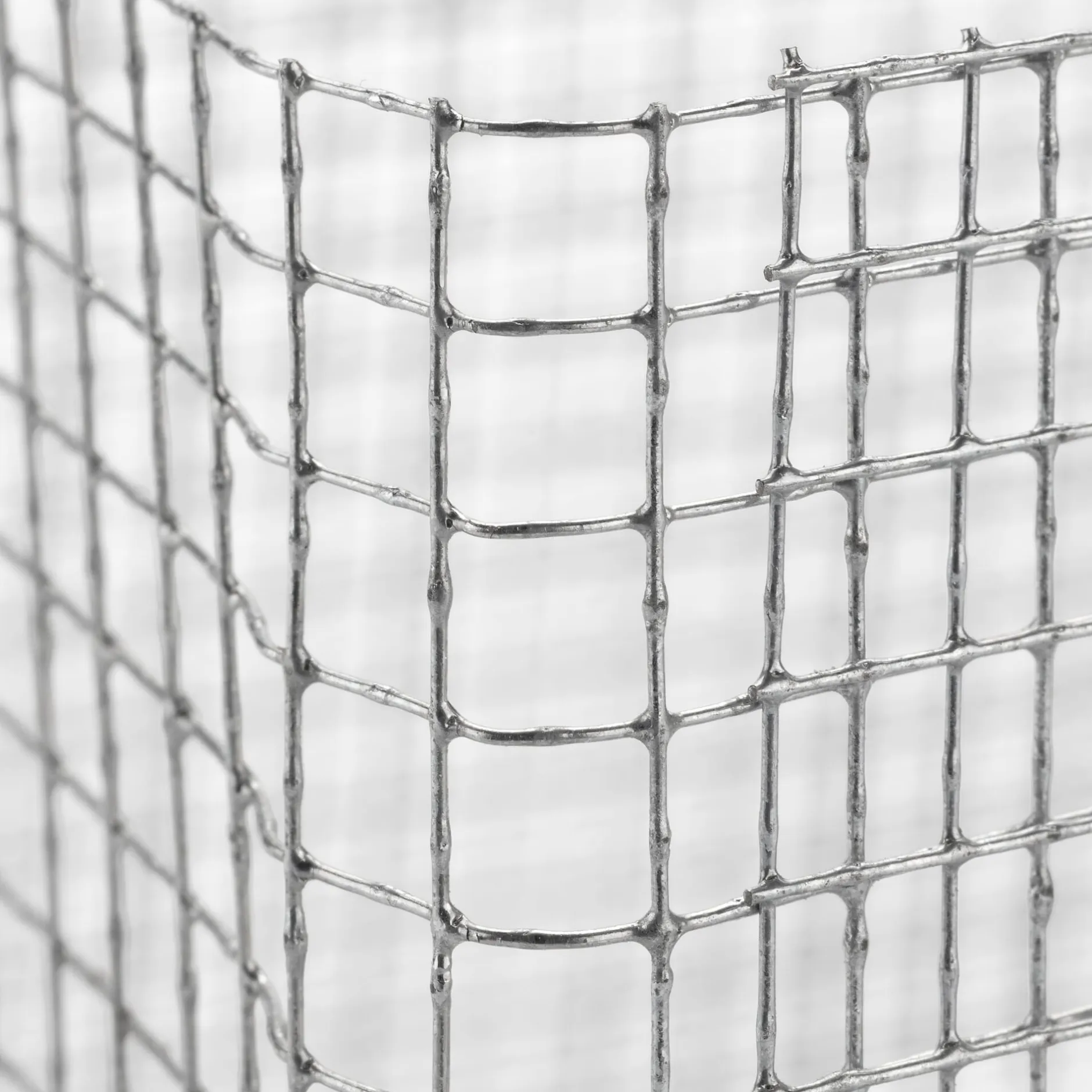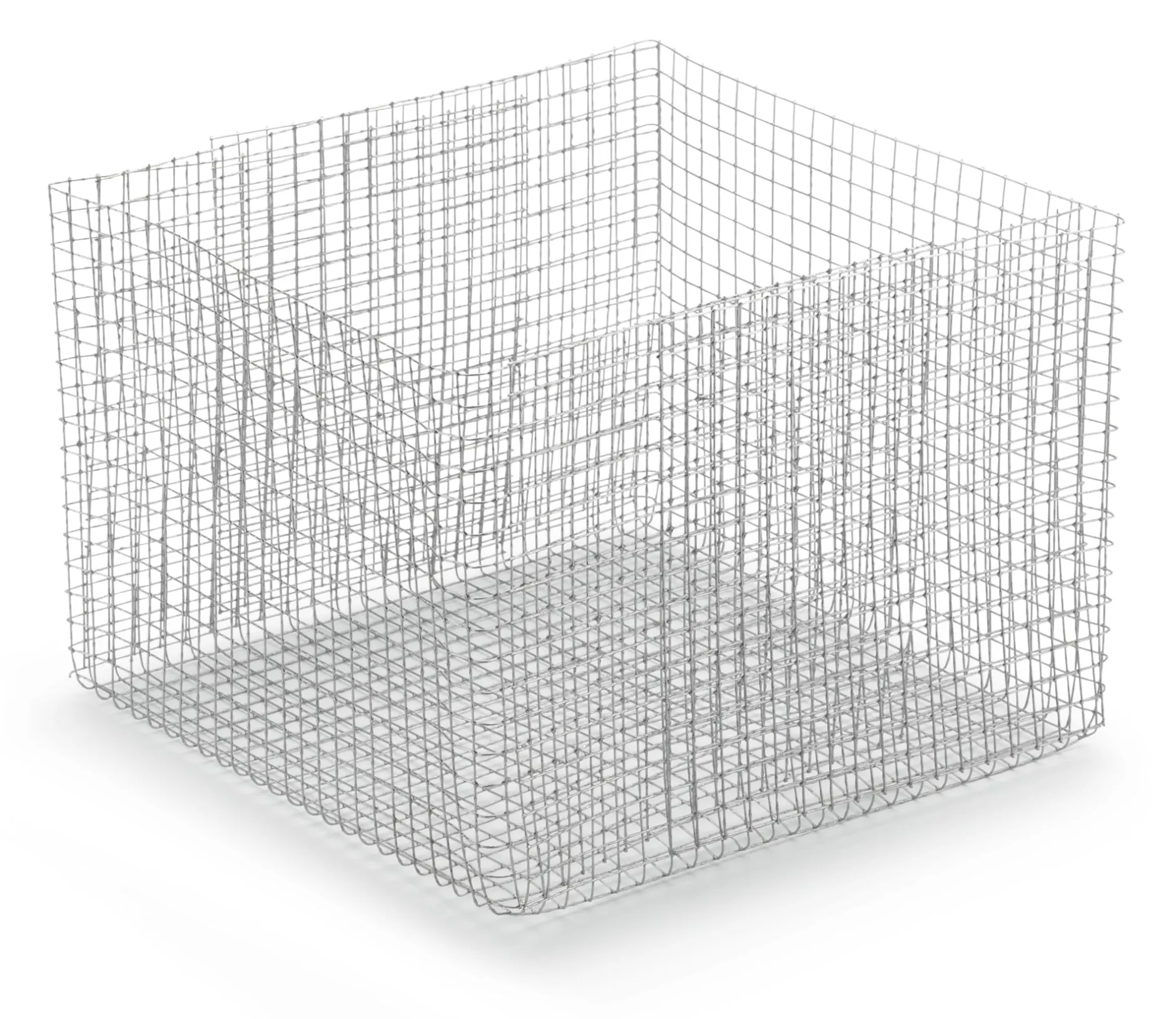 5 Drahtgitter aus feuerverzinktem Stahl (37,5 × 38 cm, Materialstärke 0,6 mm, Maschung 6,3 × 6,3 mm). Aufgebaut 15 cm × 15 cm × 12 cm. Gewicht pro Gitter 75 g.