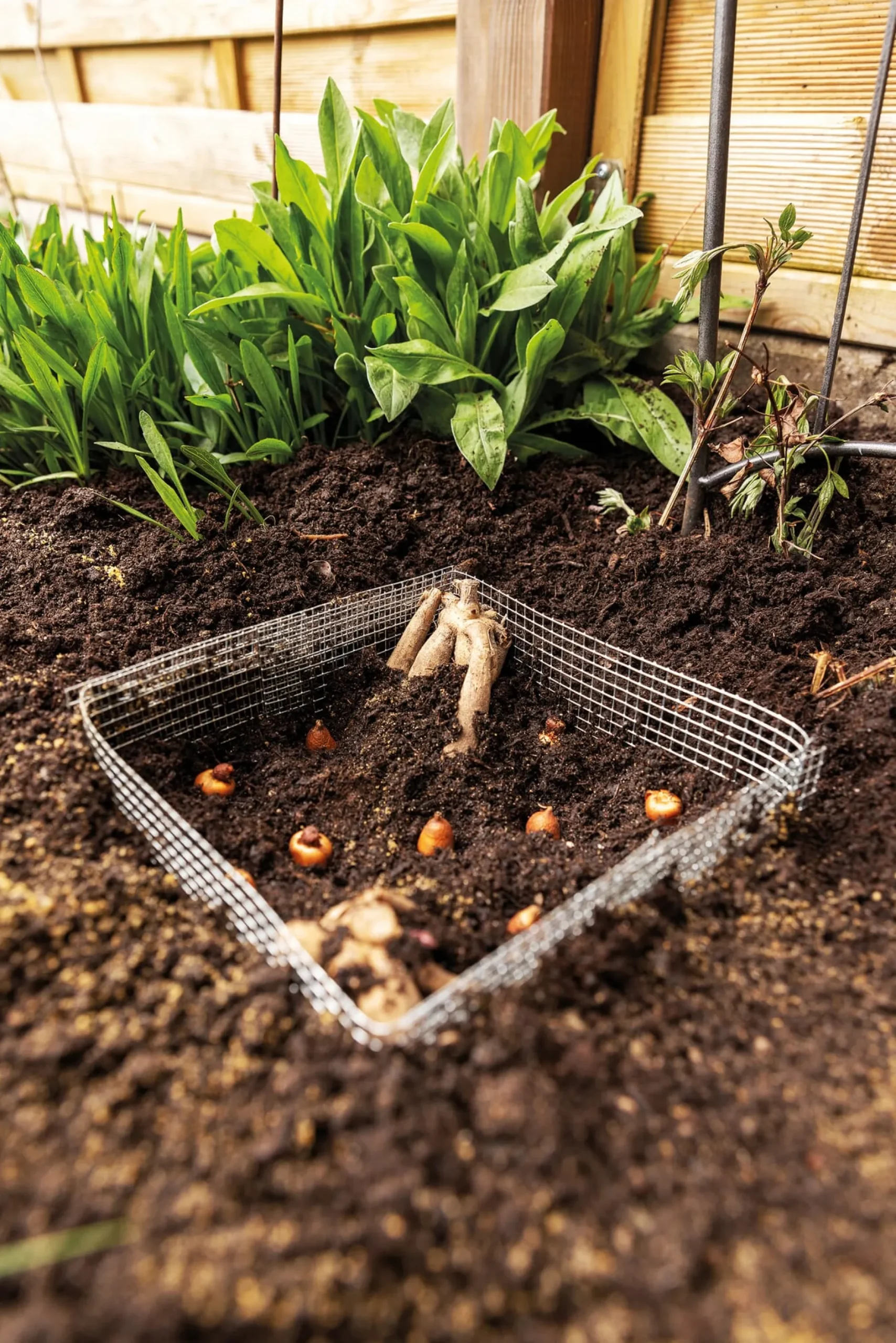 - Einfach einpflanzen: mit Zwiebeln bestückt in die Erde setzen
