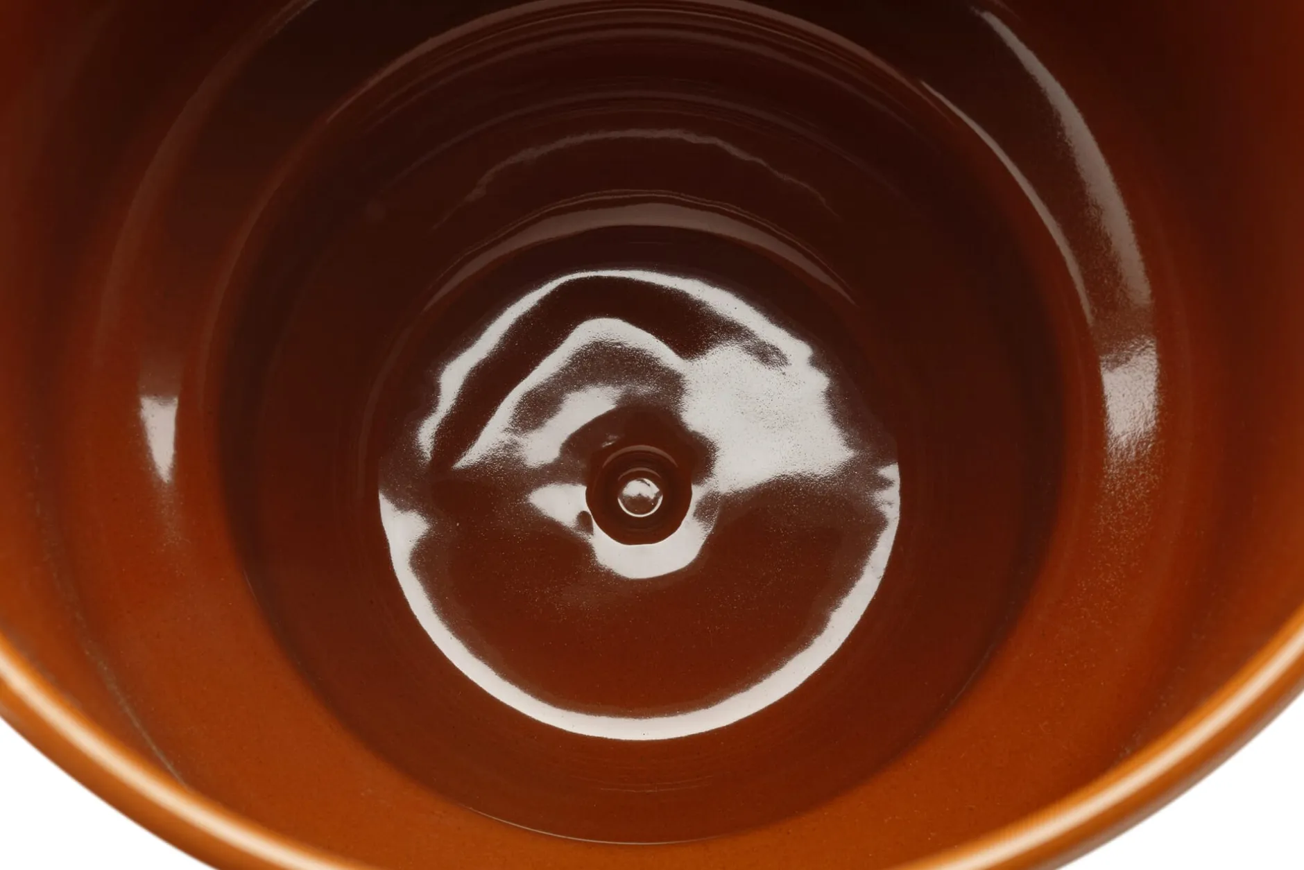In einer toskanischen Töpferei gefertigt, beeindrucken dieser Übertopf und sein Untersetzer mit Farbtiefe und Glanz in außergewöhnlicher Qualität. Diese ist einem eigenen Fertigungsschritt zu verdanken, bei dem die gebrannte Terrakotta in eine besonders hochwertige Farbglasur getaucht und anschließend ein zweites Mal gebrannt wird. Das Eintauchen erfolgt in reiner Handarbeit – die Gleichmäßigkeit der Glasur zeugt von der Sorgfalt und handwerklichen Erfahrung, mit der dieser Arbeitsschritt ausgeführt wird. Auf diese Weise entsteht ein Übertopf, der Ihre Zimmerpflanze mit Klarheit, Tiefe und Glanz natürlich-elegant in Szene setzt.