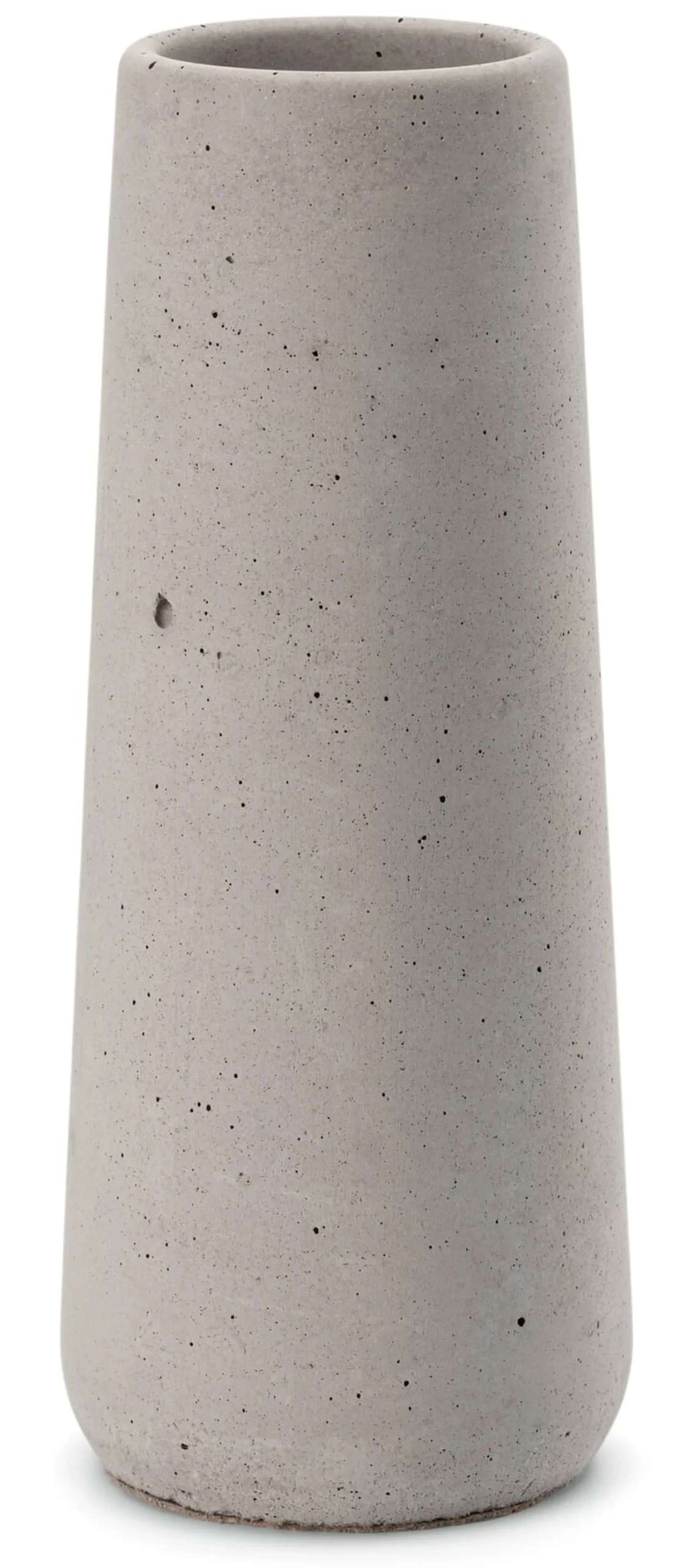 Durch ihre schlichte Massivität setzt sie einen markanten Kontrast zum blumigen Farbtupfer: Von Hand aus Beton gegossen und geschliffen, unterstreicht diese Vase die filigrane Schönheit Ihres kleinen Straußes oder einzelner Blütenzweige. Der tief angesetzte Schwerpunkt verleiht der Vase zusätzliche Standfestigkeit, eine unterseits angebrachte Korkplatte schont die Oberflächen Ihrer Möbel. Um Wasserflecken auf Tisch, Kommode oder Fensterbank müssen Sie sich ohnehin nicht sorgen: Der Beton wurde hydrophobiert und ist daher zuverlässig wasserdicht.