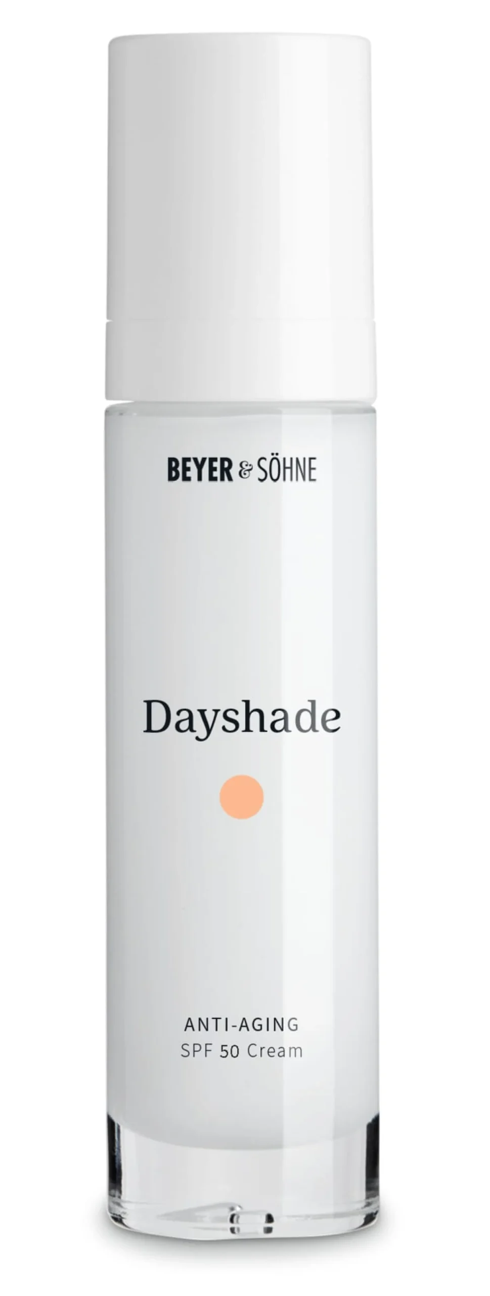Dank ihrer seidig-leichten Textur zieht die Dayshade Cream schnell ein. Sie kann als alleinige Tagespflege, zum Beispiel bei öliger und Mischhaut, oder zusätzlich mit wasserbasierten Seren oder Gelen wie Squalan oder dem Hautgel+ von Beyer & Söhne verwendet werden. Die Kombination mit anderen Cremes wird nicht empfohlen. Tragen Sie die Dayshade Cream als letzten Schritt in der Pflegeroutine auf, danach sollte nur noch Make-up aufgelegt werden. Um den UV-B-Lichtschutzfaktor 50 und UV-A-Schutzfaktor 30 zu erreichen, tragen Sie die Menge von vier Pumpstößen auf. Mit der Hälfte der Menge halbiert sich auch der Lichtschutz. Für den vollen Schutz tragen Sie Ihre Pflege schrittweise auf, ohne die Produkte miteinander zu mischen. Wir empfehlen, die Dayshade Cream mehrmals täglich anzuwenden, um den UV-Schutz aufrechtzuerhalten. Durch Abrieb oder im Wasser verringert sich der Schutz. Sie ist wasserfest und komplett weißelfrei. Ohne Nanopartikel, Duft- oder Farbstoffe. Für jede Haut geeignet, auch bei Sonnenallergie.