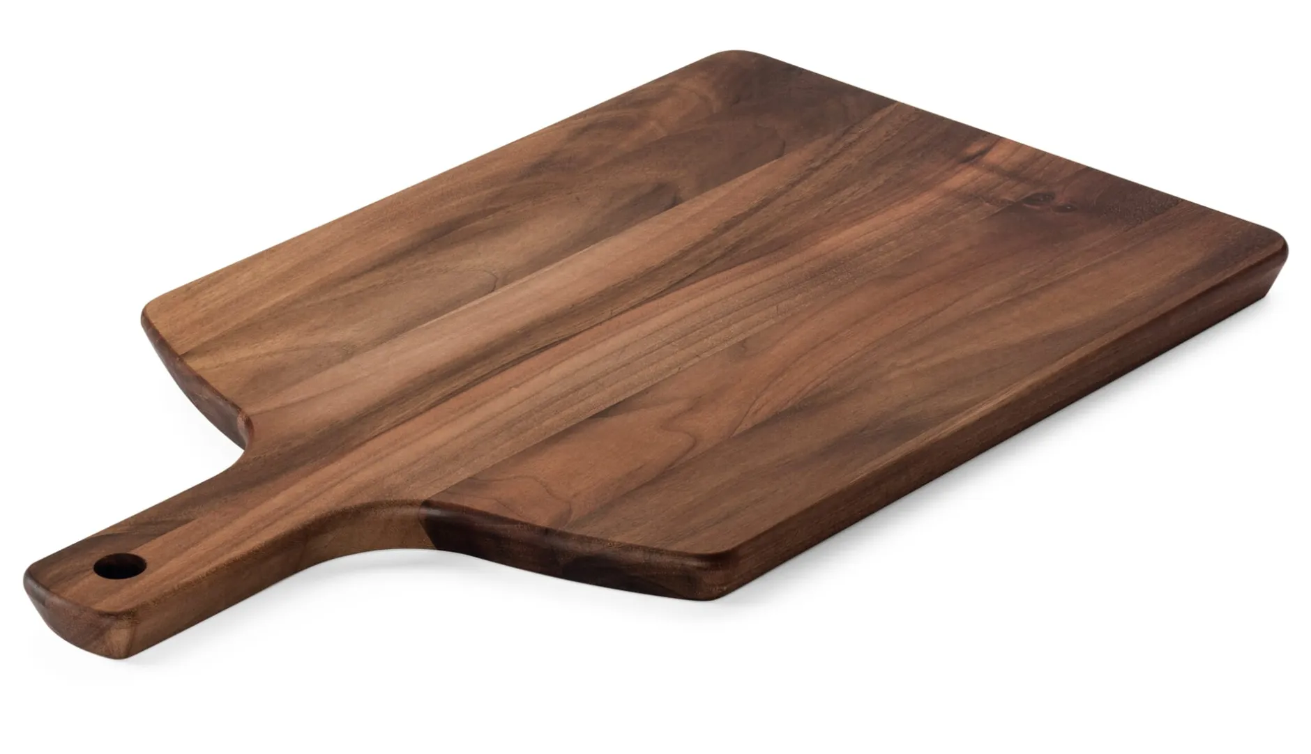 Schneiden, anrichten, servieren. Stielbrett aus Walnuss- oder Eichenholz.