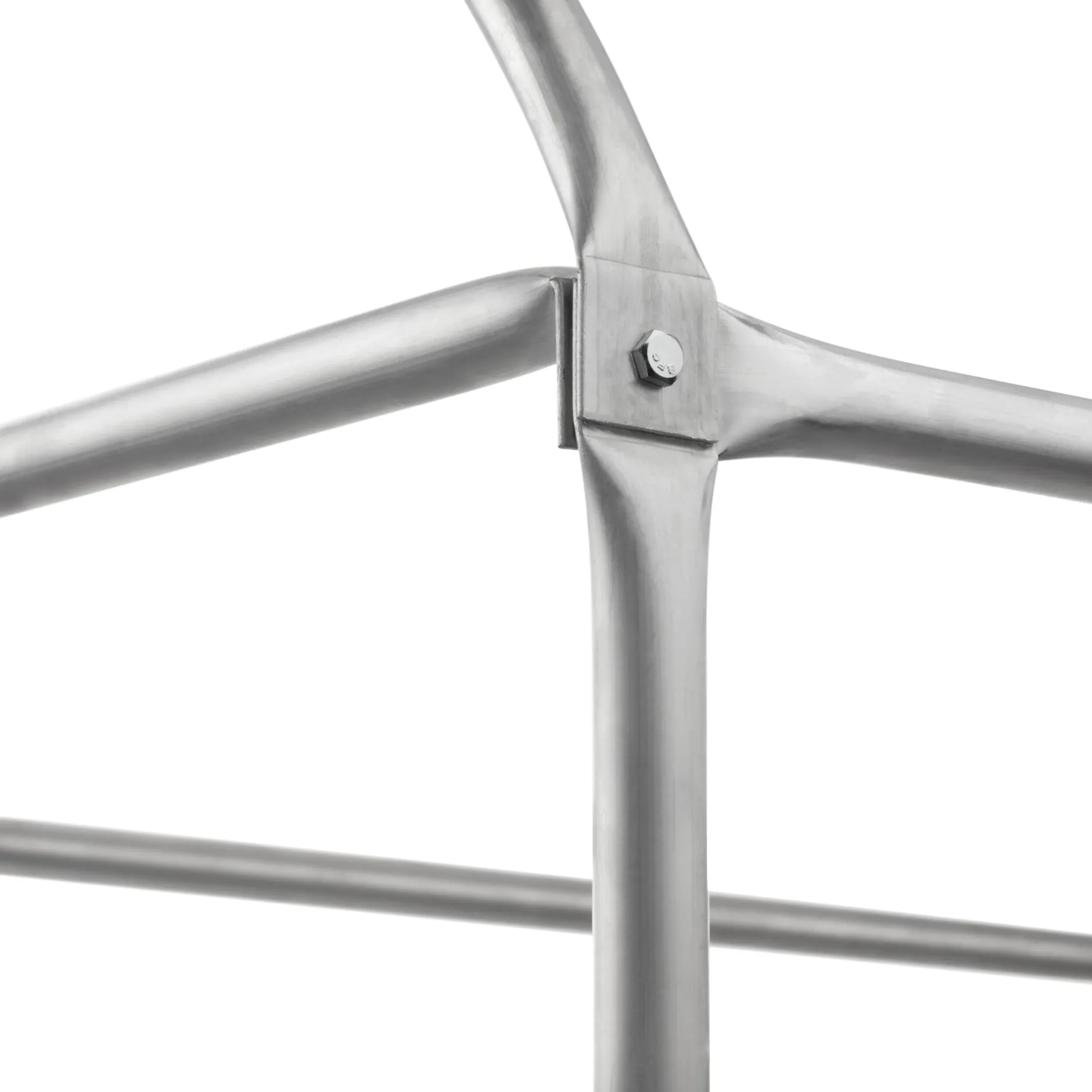 Rahmen aus Aluminiumrohren. 4 Bodenhülsen Stahl verzinkt. Gewächshausklammern aus Metall. Mehrjahres-Gewächshausfolie aus PE, UV-stabil. Länge 150 cm, Breite 80 cm, Höhe 180 cm. Gewicht 5,6 kg.