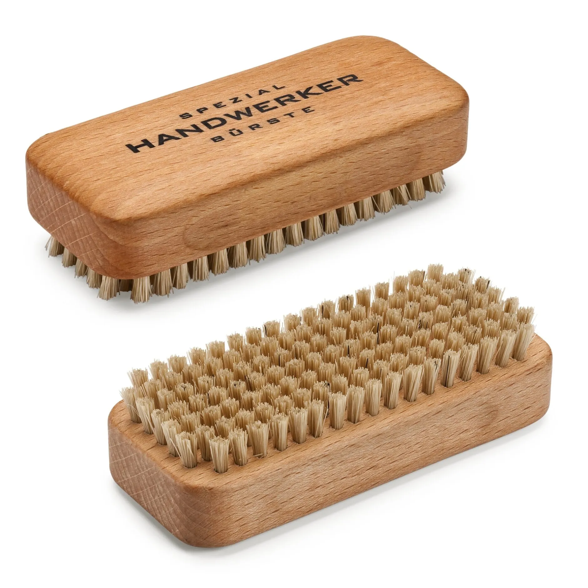 Bei der Gartenarbeit oder bei handwerklichen Tätigkeiten hat man es eher mit groben Verschmutzungen zu tun. Ihr siebenreihiger Fibrebesatz – das äußerst robuste Material wird aus den Blattrippen einer Agavenart gewonnen – ist hart und kurz gehalten, wodurch sich auch hartnäckiger Schmutz gut entfernen lässt.