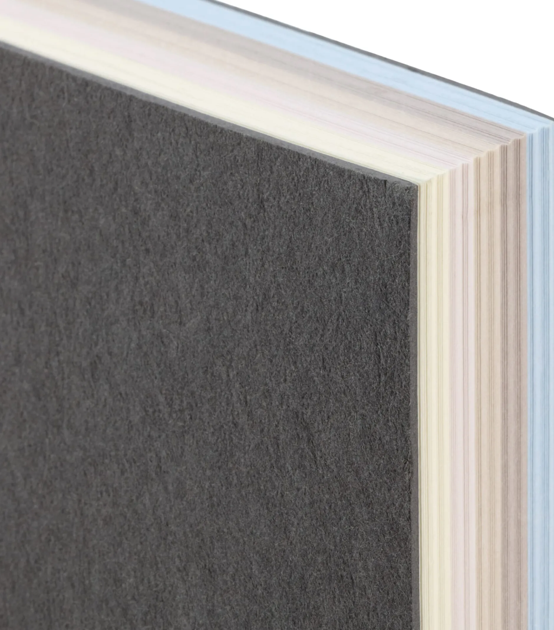 Ein weiterer praktischer Nutzen: Dank der (ansehnlichen) offenen Bindung mit Fadenheftung lässt sich das Registerbuch weit und flach aufschlagen, sodass Sie auf jeder Seite komfortabel ohne schreibstörende Buchrückenkante in der Mitte schreiben können. Zwei Umschlagdeckel aus grauem, kräftigem Naturkarton (600 g/qm) fassen die 80 Seiten matten Naturpapiers ein, diese sind über den Registerschnitt und zusätzlich über fünf dezente Farben in fünf Blockabschnitte separiert.