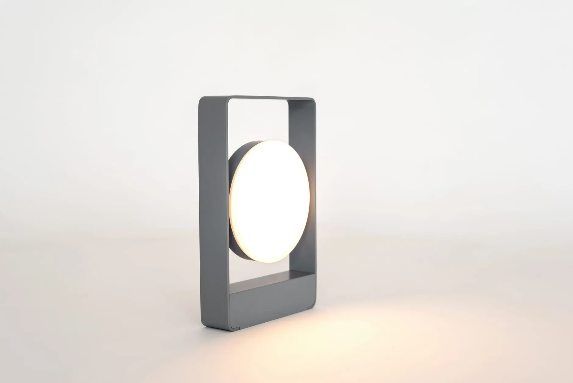 MOURO ist eine universell und kabellos einsetzbare Leuchte mit einem um die horizontale Achse um 360° drehbaren, kreisrunden Leuchtenkopf. An dem zum Griff ausgeformten oberen Teil des Gehäuses aus Stahl lässt sie sich leicht transportieren und beliebig platzieren. Dank des gewichtigen Fußes ist MOURO standfest und sorgt für Leselicht am Bett, Beleuchtung im Regal und an vielen anderen Plätzen. Die kompakte Leuchte ist in drei Lichtstärken über einen metallenen Sensorknopf am Leuchtenkopf schaltbar und erhält ihre Energieladung mithilfe des beiliegenden USB-Kabels.