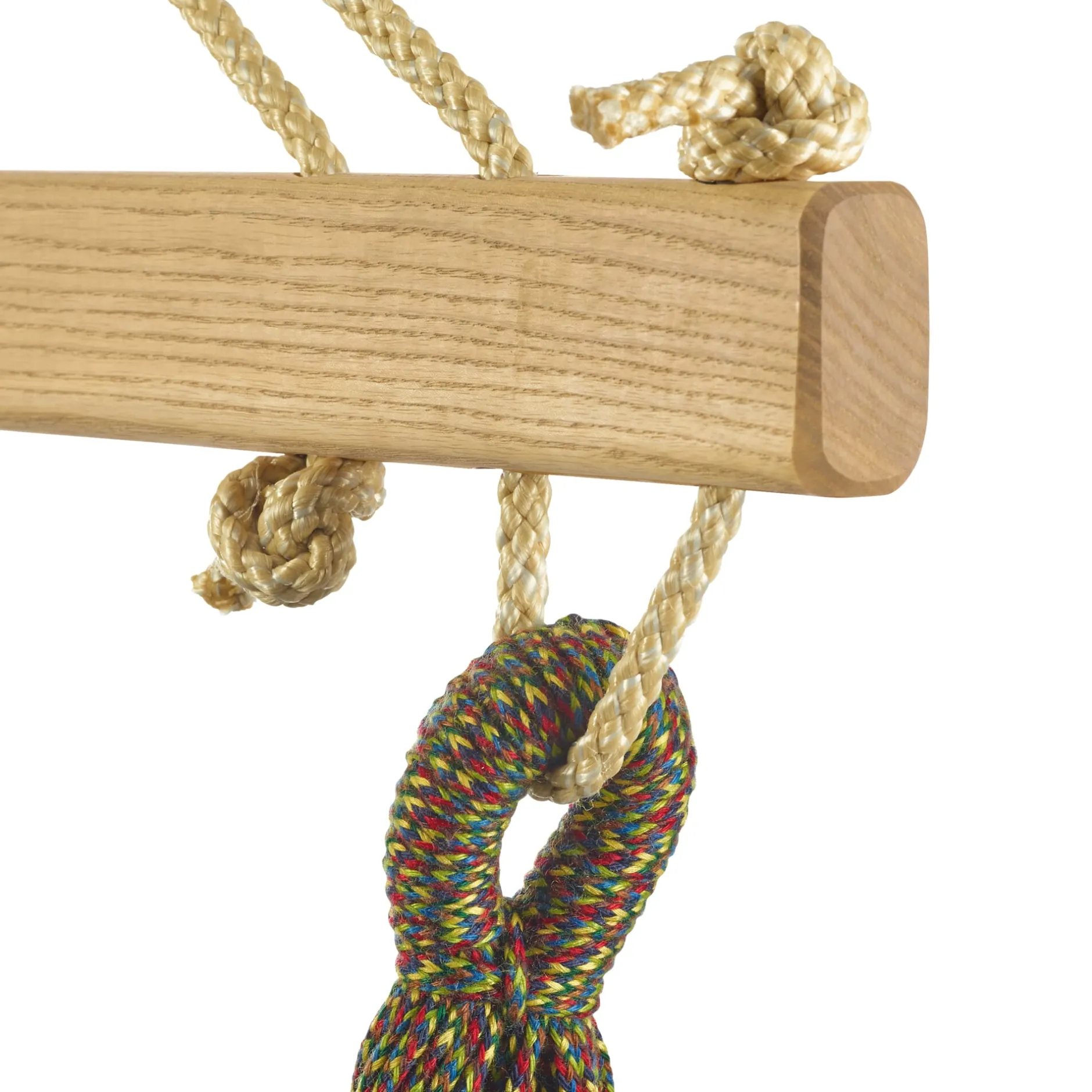 100% Baumwolle, Eschenholz (unbehandelt). Drehwirbel und Karabiner aus galvanisch verzinktem Stahl. Hergestellt in Österreich.