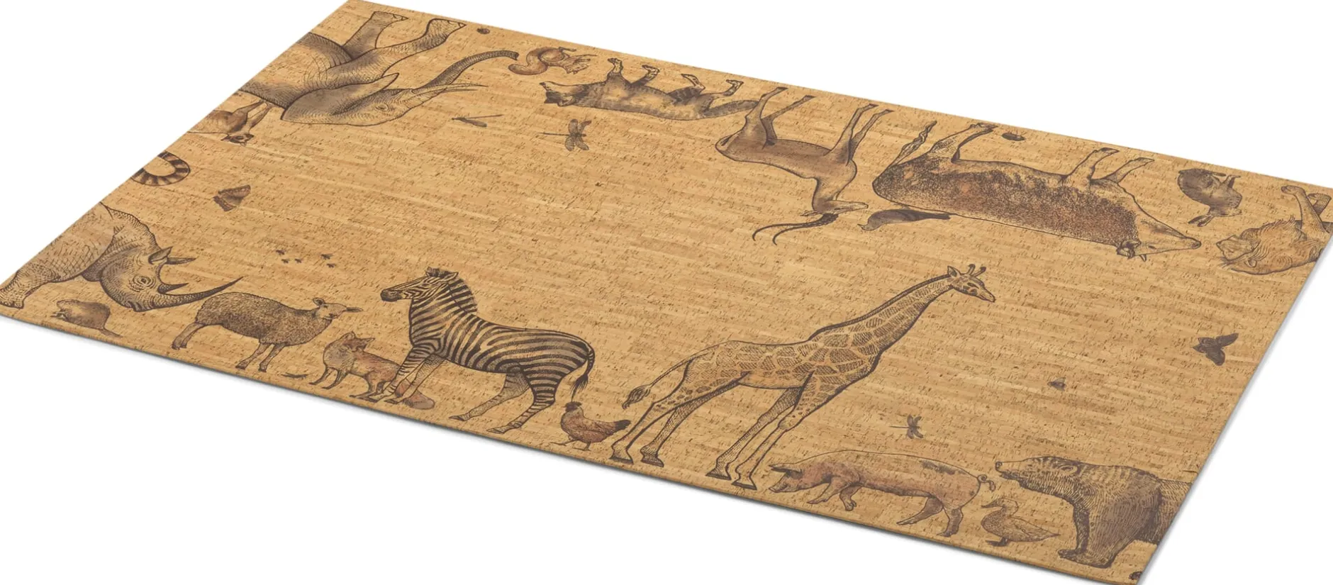 Die rundum verlaufenden, liebevoll gestalteten Tier-Illustrationen machen den Kinder-Teppich zu einem Blickfang, der die Phantasie zusätzlich beflügelt. Die Illustrationen sind per UV-Digitaldruck aufgebracht, mit ihren dezenten Rotbrauntönen verfügen sie über eine hohe Lichtechtheit (5–7) und werden Ihr Kind lange in seine Phantasiewelten begleiten. Übrigens verschafft die Materialstärke von rund vier Millimetern dem Korkteppich einen ansehnlichen Zusatznutzen: Er ist ausreichend dick, um als große Pinnwand verwendet zu werden – sollte Ihr heranwachsendes Kind es eines Tages als unter seiner Würde betrachten, auf dem Boden zu spielen. Doch bis dahin werden wohl noch viele Bälle und Bagger über den Teppich rollen …