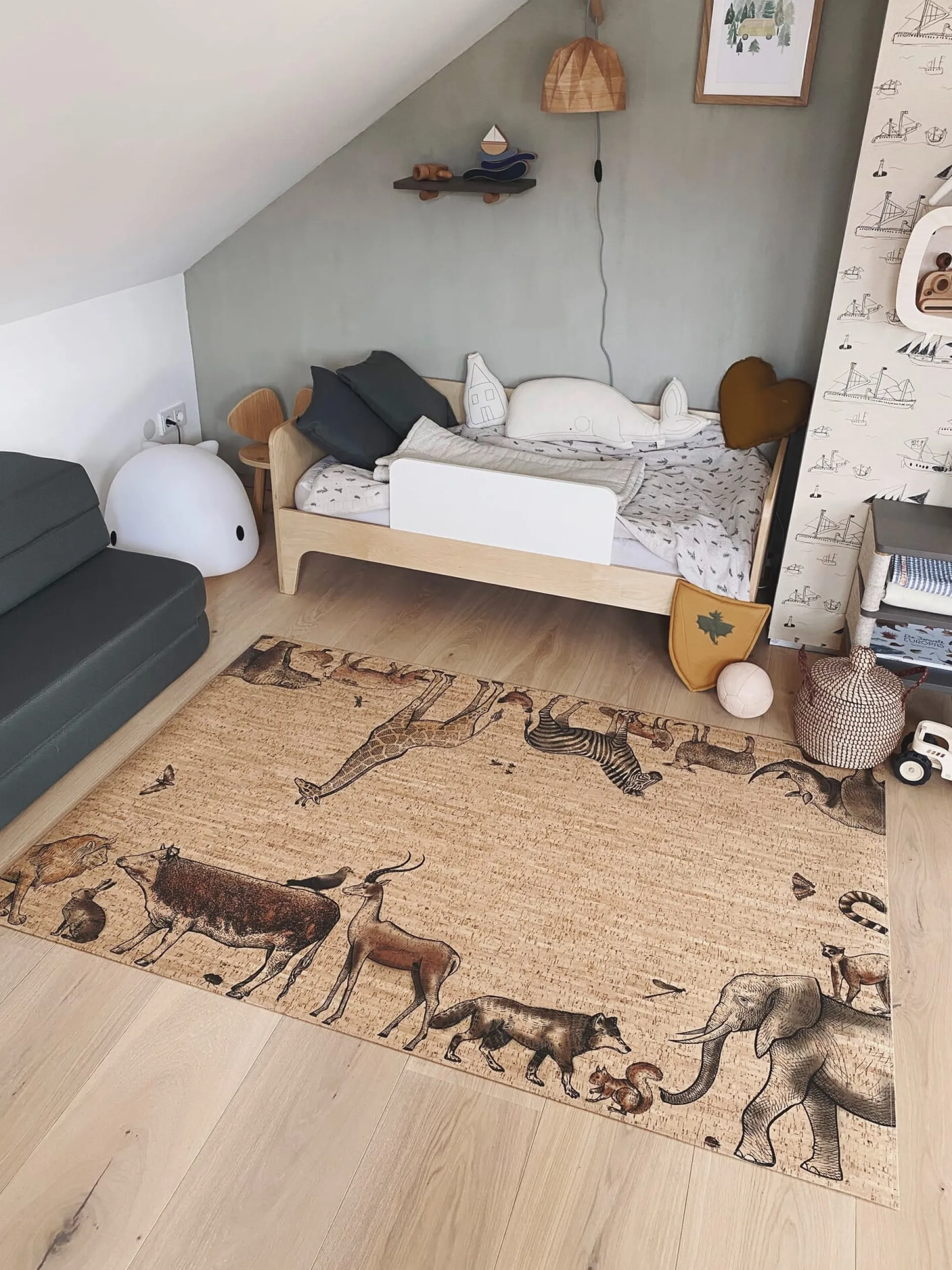 Im Kinderzimmer sind Möbel schön – und doch übt der Boden auf Ihr Kind oftmals die größere Anziehungskraft aus. Die große Fläche bietet dem Nachwuchs einfach mehr Platz, um Puppen und Plüschtiere, Holzeisenbahn und die Einsatzwagen der Feuerwehr im großen Stil agieren und auffahren zu lassen. Damit Ihr Kind sämtliche kreativen Einfälle auf einer widerstandsfähigen Unterlage durchspielen kann, ohne an Bequemlichkeit einzubüßen, stellt eine österreichische Manufaktur diesen robusten Teppich aus Kork her.