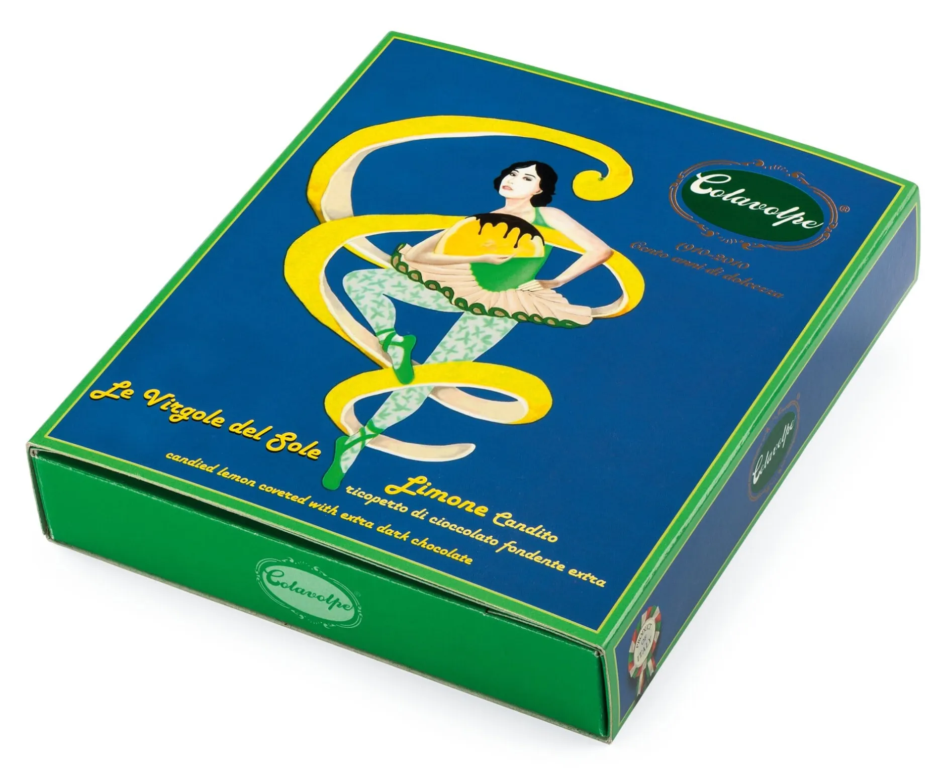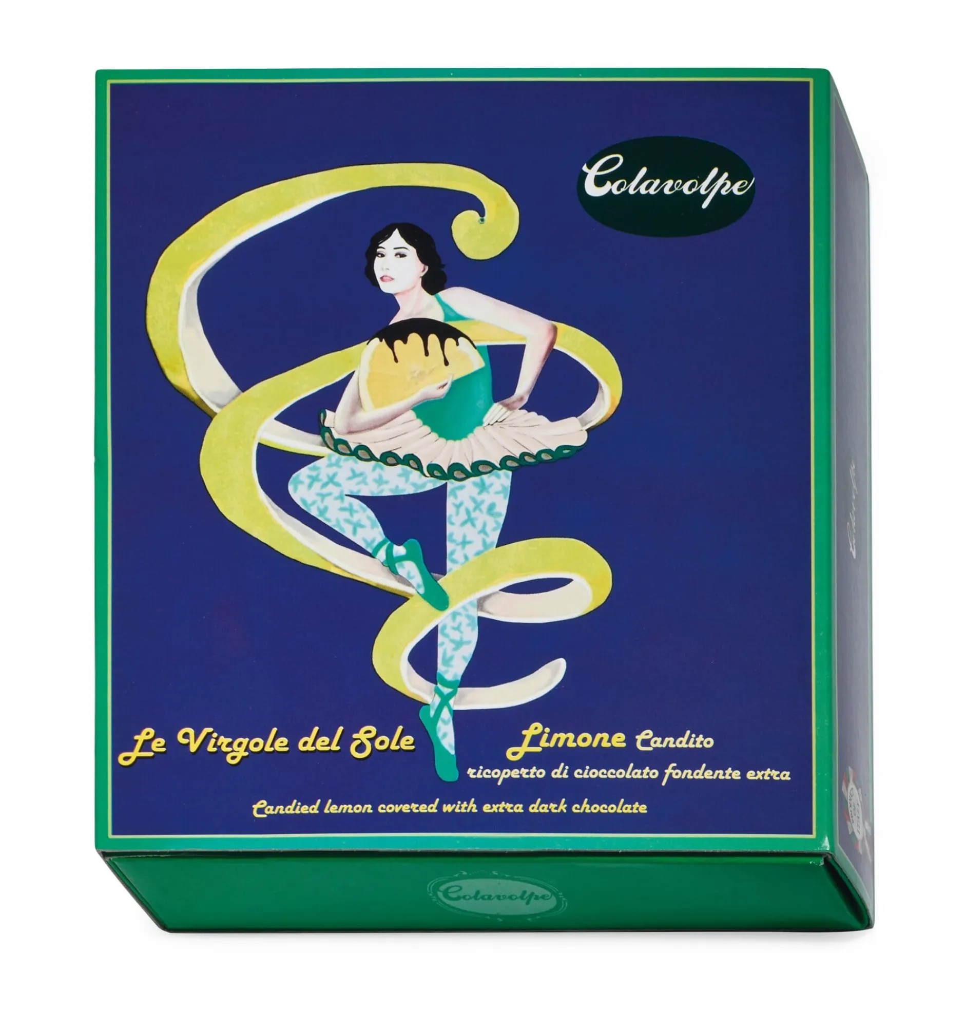 Colavolpe aus der kalabrischen Provinz Cosenza begann seinen Betrieb 1910 mit der Verarbeitung von Feigen, er versteht sich aber auch bestens auf die Herstellung kandierter Früchte in Schokolade. Von bemerkenswertem Wohlgeschmack sind seine mit 72-prozentiger, intensiver Bitterschokolade umhüllten Orangen- und Zitronenschalen-„Filets“. Die fingerlangen Stücke, die – bei Colavolpe selbstverständlich – von Früchten aus italienischer Landwirtschaft stammen, haben einen angenehm weichen Biss, und ihre fruchtigen ätherischen Öle harmonieren bestens mit den dunklen Kakaoaromen der sie umhüllenden Schokolade.