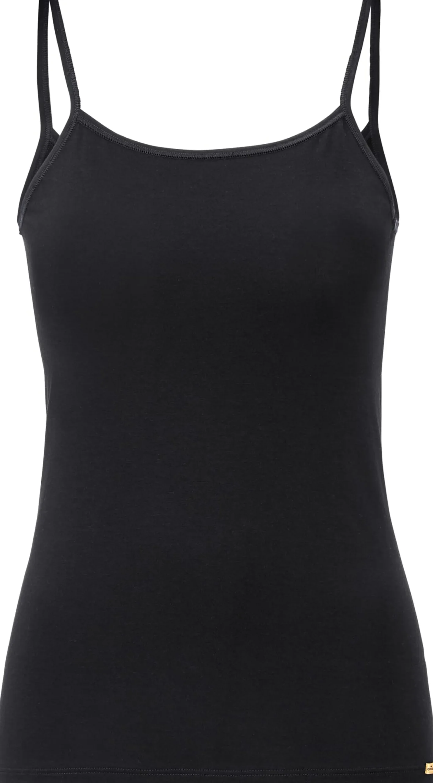 Dieses modisch geschnittene Unterhemd mit Spaghettiträgern zeichnet sich durch einen besonders weichen Griff aus. Der Jersey, aus dem es gemacht wird, ist aus Bio-Baumwolle. Durch etwas Elastan schmiegt es sich weich an und bleibt dauerhaft in Form. Da es zudem ohne Seitennähte gearbeitet ist, ist es selbst für empfindliche Menschen angenehm zu tragen. Der Halsausschnitt und die Armausschnitte sind eingefasst.