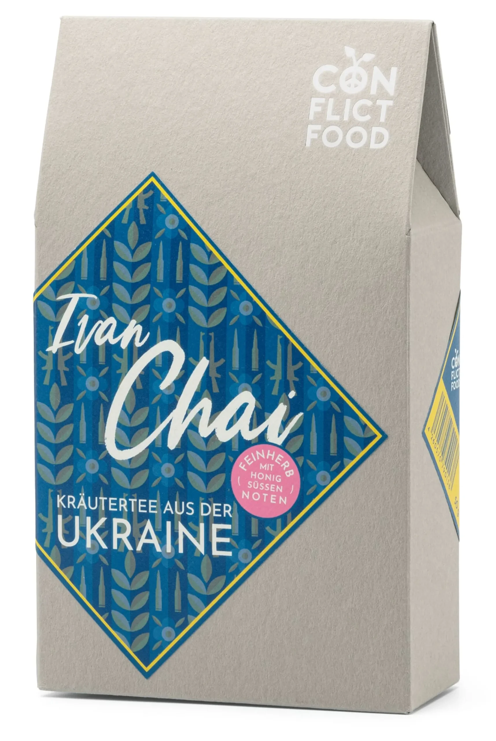 Dieser feinherbe Kräutertee mit honigsüßer Note besteht aus handverlesenen, fermentierten Weidenröschenblättern. Die Pflanzen, von denen sie stammen, wachsen wild in den ukrainischen Karpaten. Rund um die Manufaktur Molfar werden die Blätter im Sommer von der Dorfgemeinschaft gepflückt, in der Manufaktur fermentiert und danach getrocknet. So wird aus den Weidenröschenblättern der Ivan Chai. Sein Geschmack erinnert an Schwarztee, sein Duft an warmen Honig. Ivan Chai ist frei von Koffein, was ihn zum idealen Getränk für entspannte Abende macht. Conflictfood ist das erste Unternehmen, das diesen Bio-Tee aus der Ukraine in die EU bringt. Seine Zubereitung ist denkbar einfach: Zwei Teelöffel pro Tasse mit 90 °C heißem Wasser übergießen und fünf bis zehn Minuten lang ziehen lassen. Der Tee kann übrigens bis zu fünf Mal aufgegossen werden – und ein Löffel Honig unterstreicht sein natürlich süßes Aroma.
