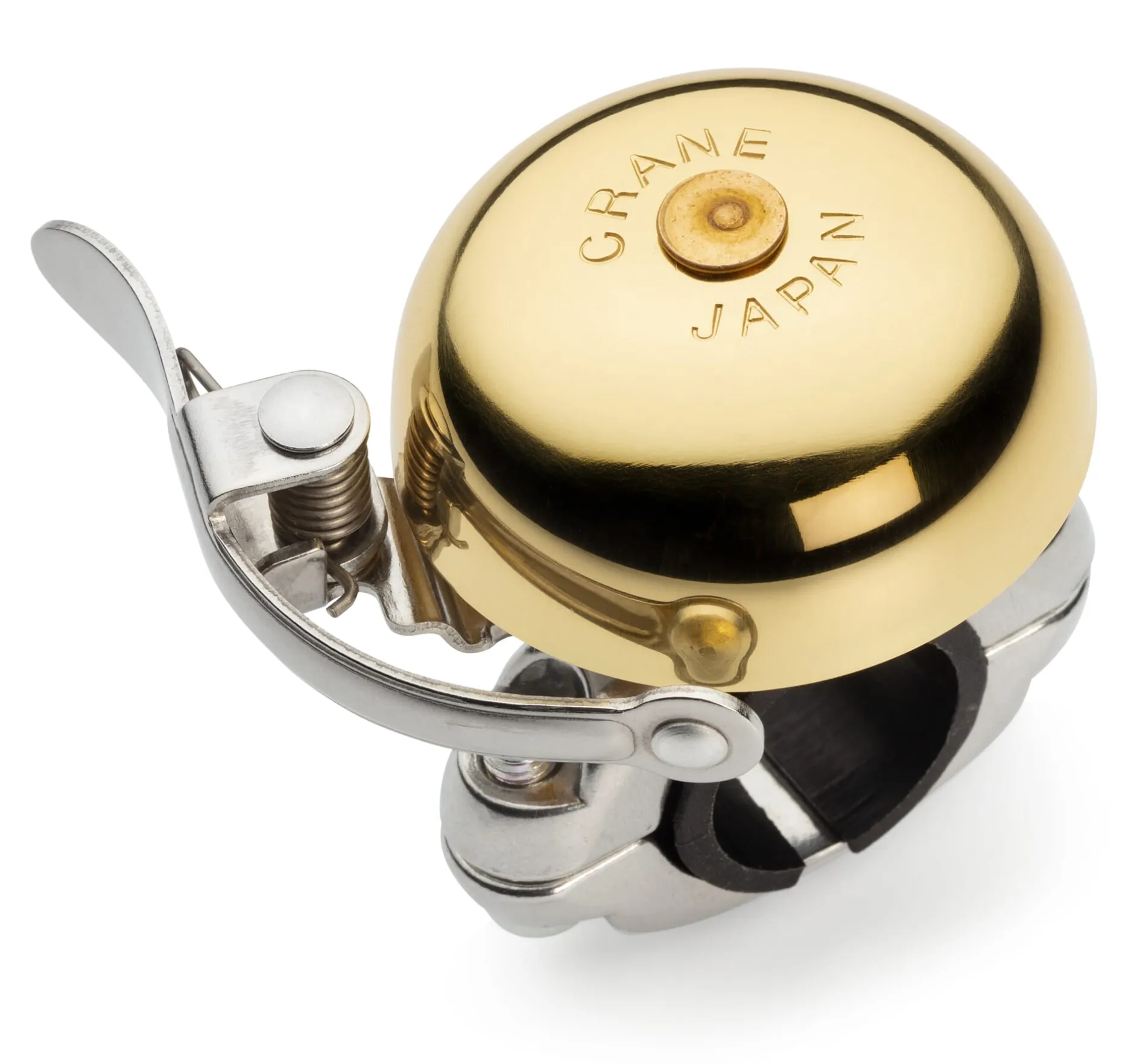 Signalgeber oder Musikinstrument? Wenn Sie diese Fahrradglocke hören, werden Sie sagen: ein Instrument, so fein und lang anhaltend klingt sie. Jeder Anschlag ruft einen erst nach rund zehn Sekunden verhallenden Wohlklang hervor. Kein „Weg da!“, sondern ein musikalischer Impuls, auf den jeder „Steh-im-Weg“ gar nicht anders als mit einem tänzerischen Sidestep reagieren kann. Hinzu kommt das Vergnügen, das schöne Stück aus gedrücktem Messing stets vor Augen zu haben. Crane Bell Co. Ltd. fertigt die Klingel in Japan und stattet sie mit einer soliden Klammer mit Gummipuffer aus, die für dauerhaft festen Sitz am Lenker sorgt.