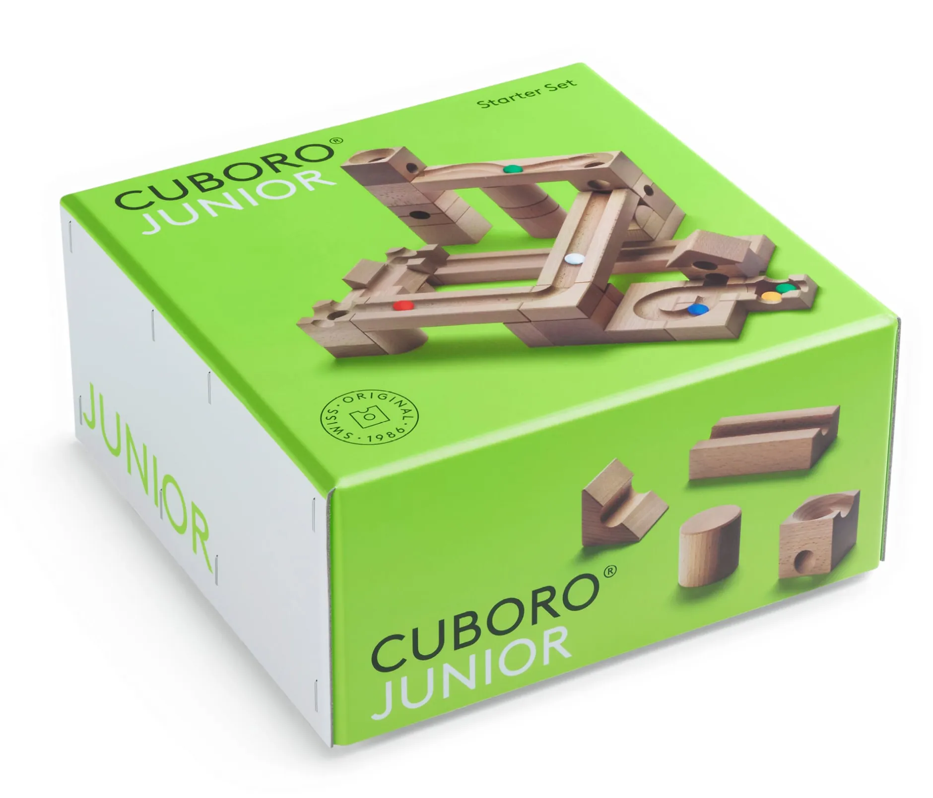 Das Buchenholz stammt aus regionaler Wald- und Forstwirtschaft und ist als Schweizer Holz zertifiziert. Die Glaskugeln lässt Cuboro® von einem Spezialisten in Japan herstellen: Sie sind in Größe und Gewicht exakt auf die Elemente abgestimmt, sodass sie reibungslos durch ihre Bahn rollen.