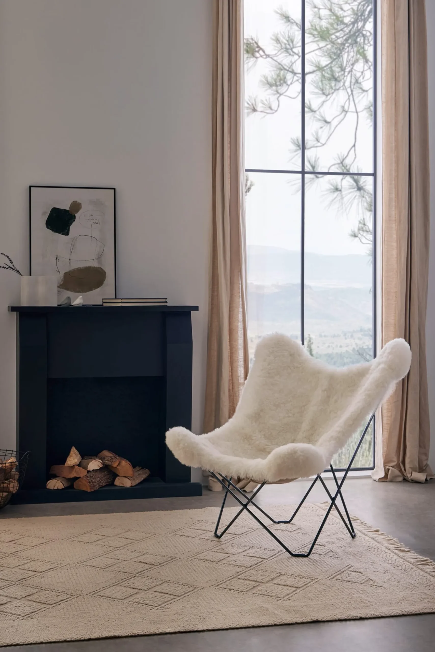 Islandschafe sind ausgesprochen robuste Gesellen, die sich selbst im rauen isländischen Klima bestens aufgehoben fühlen. Ihre „Coolness“ angesichts der Wetterverhältnisse verdanken sie vor allem ihrer ungewöhnlich dichten, langen Wolle, die sie ebenso vor Kälte und Regen wie vor Hitze schützt. Dank dieser natürlichen klimatisierenden Eigenschaften des Islandschaffells eignet es sich hervorragend dazu, Ihnen im Winter wärmende Bequemlichkeit zu verschaffen und selbst im Sommer eine behagliche Komfortzone bereitzustellen. Für den Sessel Mariposa kommt ein vegetabil gegerbtes Islandschaffell zum Einsatz, dessen Wolle kürzer geschoren wurde. Durch die Schur wird das ungebleichte und ungefärbte Fell noch schmiegsamer und ist zudem pflegeleichter: Zur gelegentlichen Reinigung können Sie es problemlos gründlich absaugen (Staubsauger bitte auf niedrige Stufe stellen).