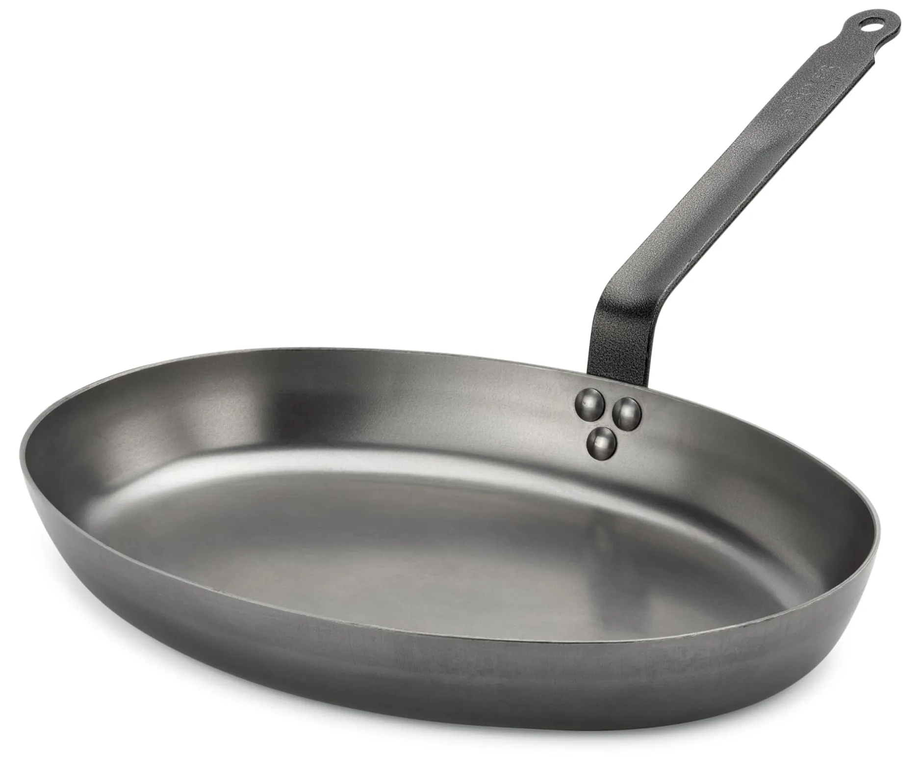 Oval aus gutem Grund: Diese Eisenpfanne aus dem Hause de Buyer ist auf das Braten und Dünsten ganzer Fische und Fischfilets spezialisiert. Denken Sie an gebratene Forelle in brauner Butter, an mediterran angerichtete Dorade, an Maischolle, gebratene Seezunge in Zitronenbutter … Wie alle Pfannen aus Eisen freut sich auch dieses Exemplar, wenn es gut eingebraten wird – dann ist es sehr pflegeleicht. Zur Reinigung genügt das Auswischen mit einem feuchten Tuch oder etwas Küchenpapier. Um die Bratschicht zu erhalten, empfehlen wir, das Pfanneninnere gelegentlich mit ein wenig Speiseöl einzureiben. Unser Tipp: Schalten Sie die Bräterfunktion Ihrer Herdplatte zu.