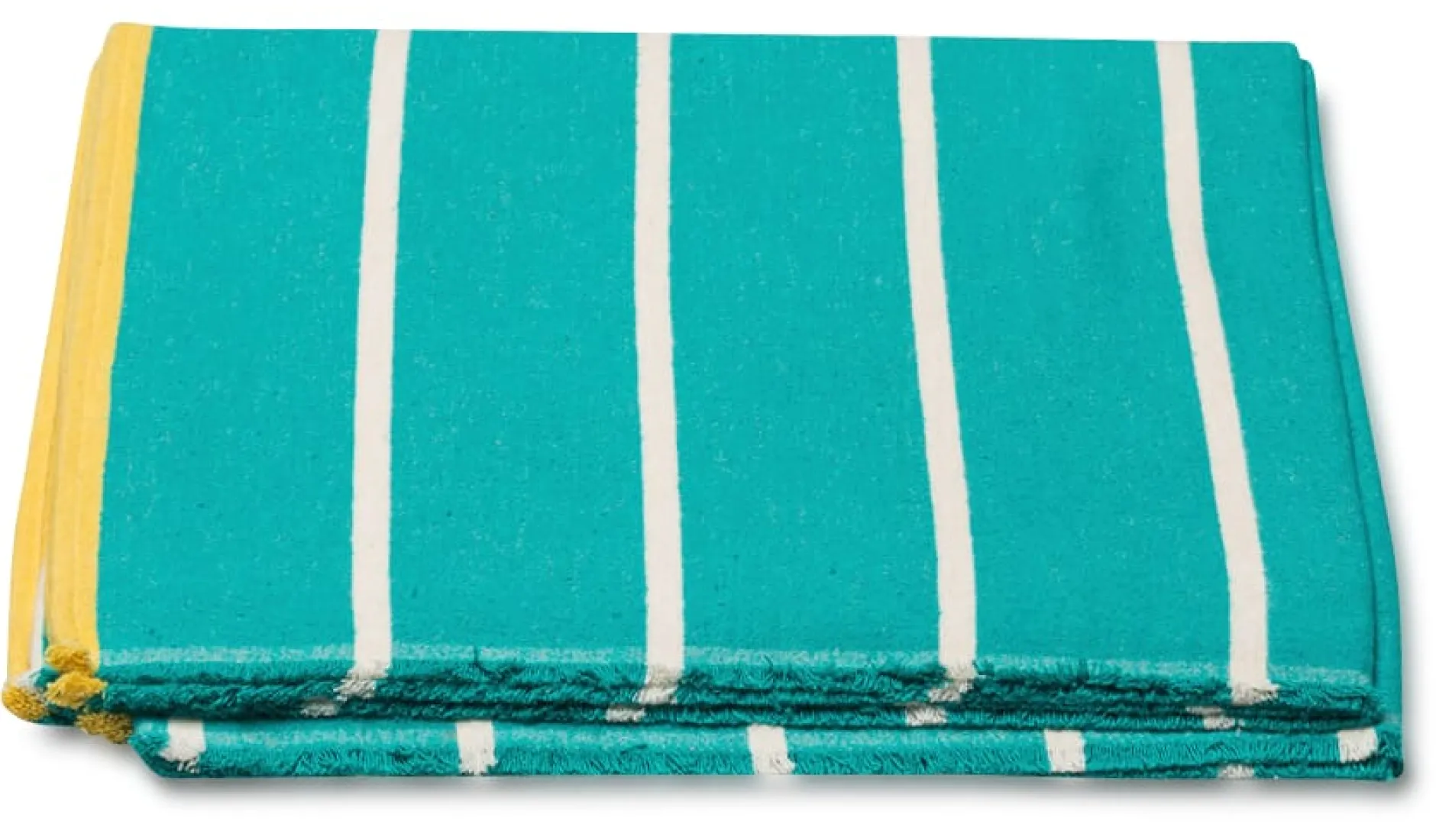 Leichte Decke aus einem Baumwollflanellgewebe für kühle Sommerabende am Wasser, im Garten oder auf Terrasse. Gemütlich auch im Einsatz auf Sofa oder Sessel. Eine dünn gewebte Decke, die dennoch wärmend ist. Der hohe Baumwollanteil sorgt dabei für gute Atmungsaktivität. Die klassischen Streifen auf sommerlichen Farben werden durch einen farblich abgesetzten Saum eingefasst, was der Decke eine spezielle Optik verleiht.