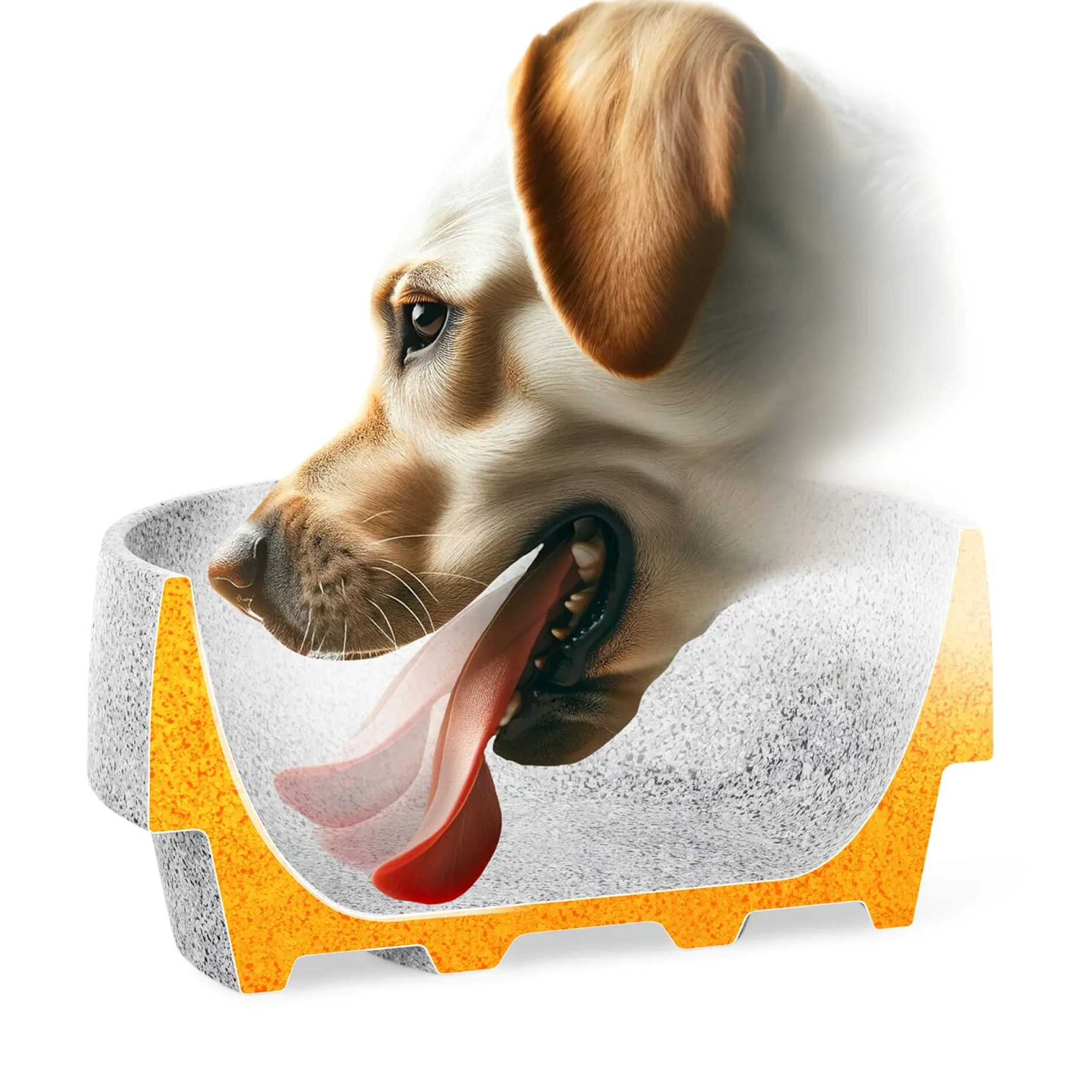 Die Oberfläche ist keramiktypisch fein und leicht rau – nicht zu sehr, um die Zunge Ihres Haustieres nicht zu beeinträchtigen, aber doch genug, um zu verhindern, dass das Futter beim Aufschlecken aus dem Napf herausschnellt (wie es bei sehr glatten Futternäpfen leicht geschehen kann).