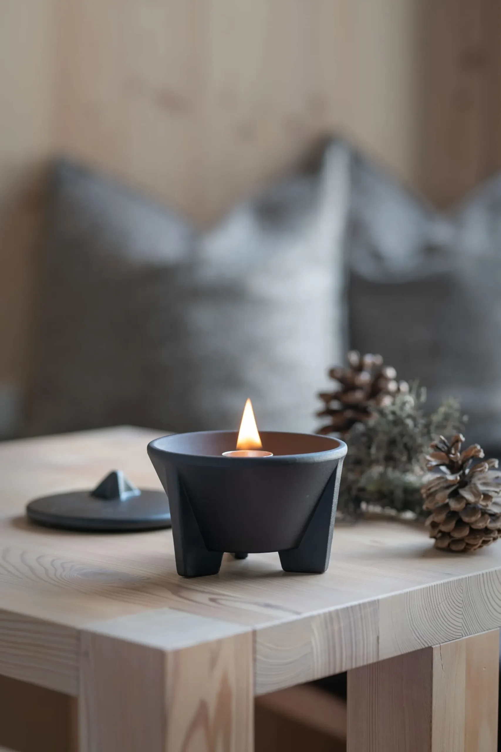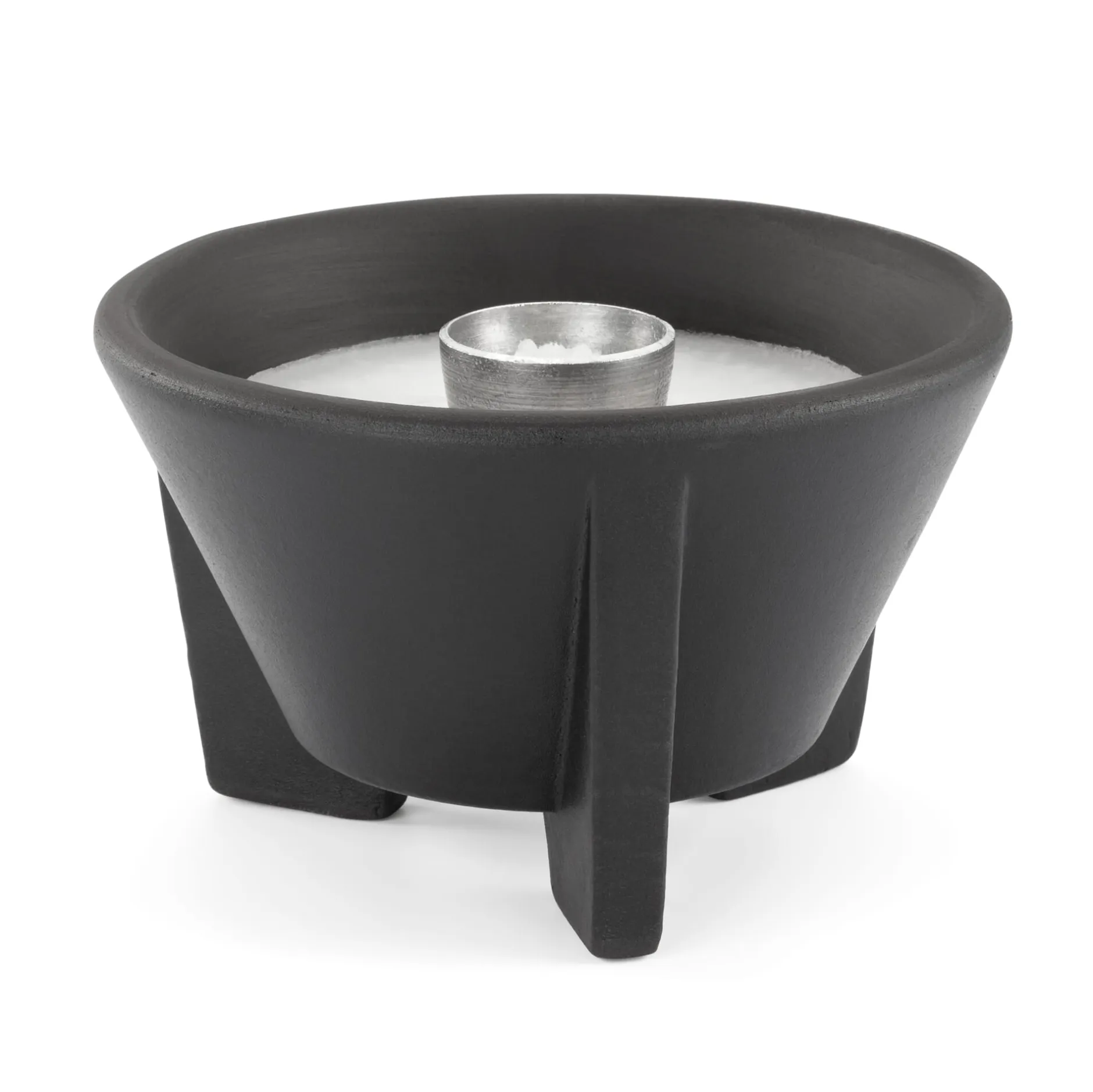 Klein: mit Lavasand schwarz gefärbt, außen glasiert. Höhe ca. 8 cm, Ø 13 cm. 880 g. Sowohl in geschlossenen Räumen als auch unter freiem Himmel zu verwenden.