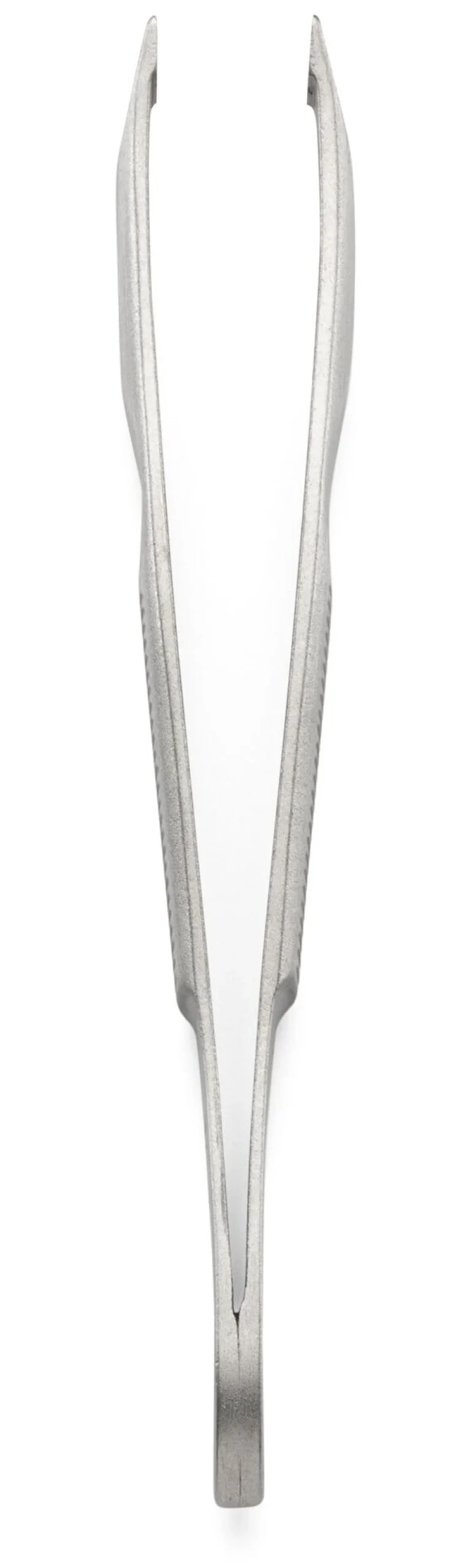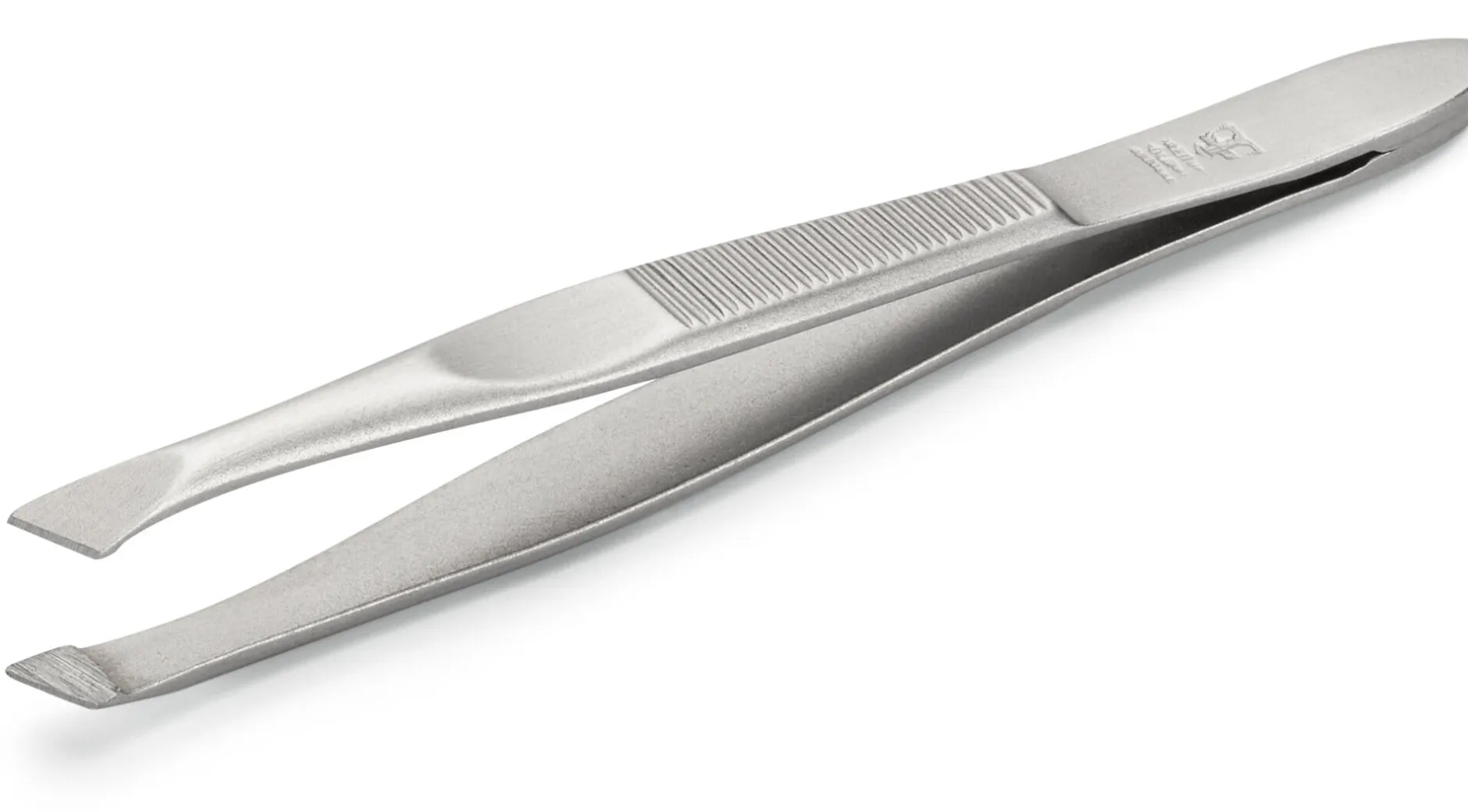 Einfache Pinzette mit schräger Spitze: Sie öffnet sich bis 7 mm und ist an den Griffflächen geschliffen.