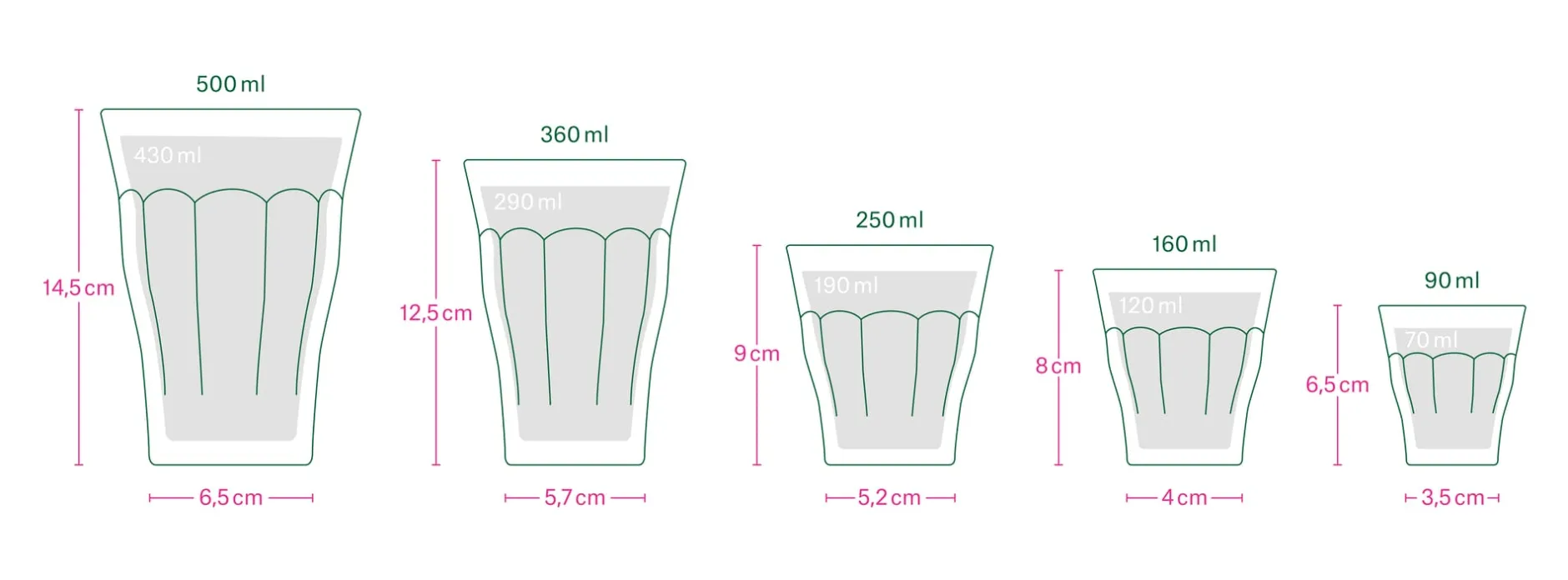 Volumen 250 ml. Ø 8,5 cm, Höhe 9 cm. Gewicht 210 g.
