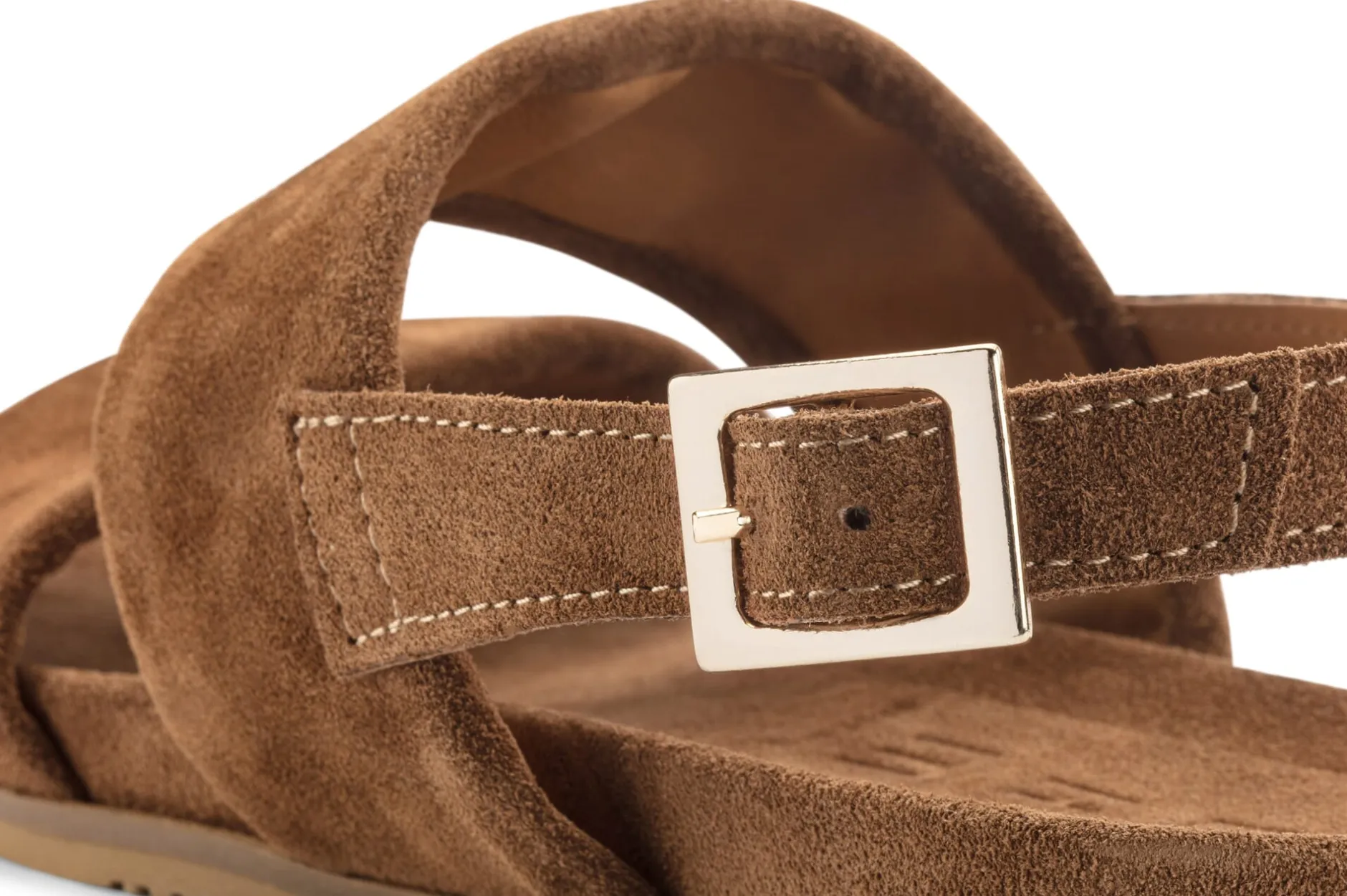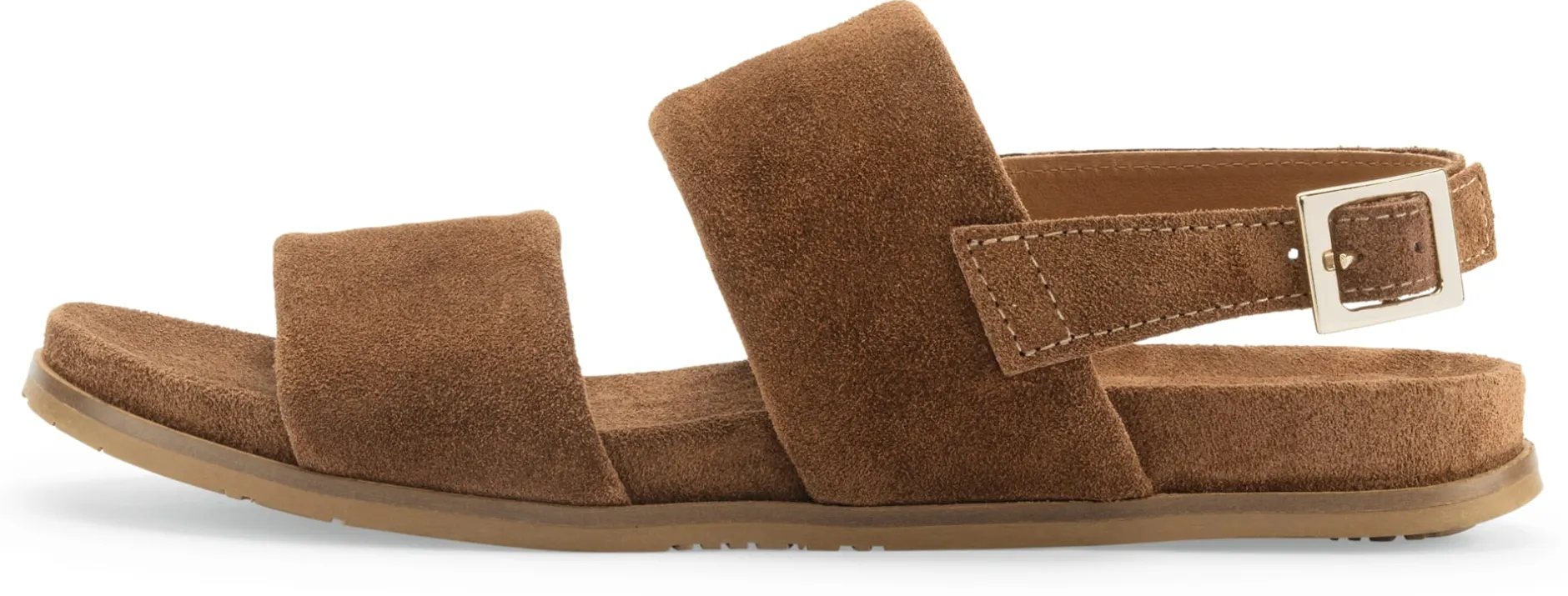Dieses formschöne Modell zeigt einmal mehr, dass elegante Sandalen auch ungemein tragefreundlich sein können. Das Obermaterial besteht aus samtigem Kalbveloursleder. Innen sorgen das Futter aus weichem Schweinsleder und die Decksohle aus Kalbveloursleder für ein geschmeidiges Tragegefühl und ein ausgeglichenes Fußklima. Die über Vorderfuß und Spann laufenden Riemen, der verstellbare Fersenriemen und das anatomisch geformte Fußbett geben dem Fuß Halt und ermöglichen bequemes Gehen und Stehen selbst über viele Stunden. Die rutschfeste Gummisohle bietet guten Grip auf vielen Untergründen.