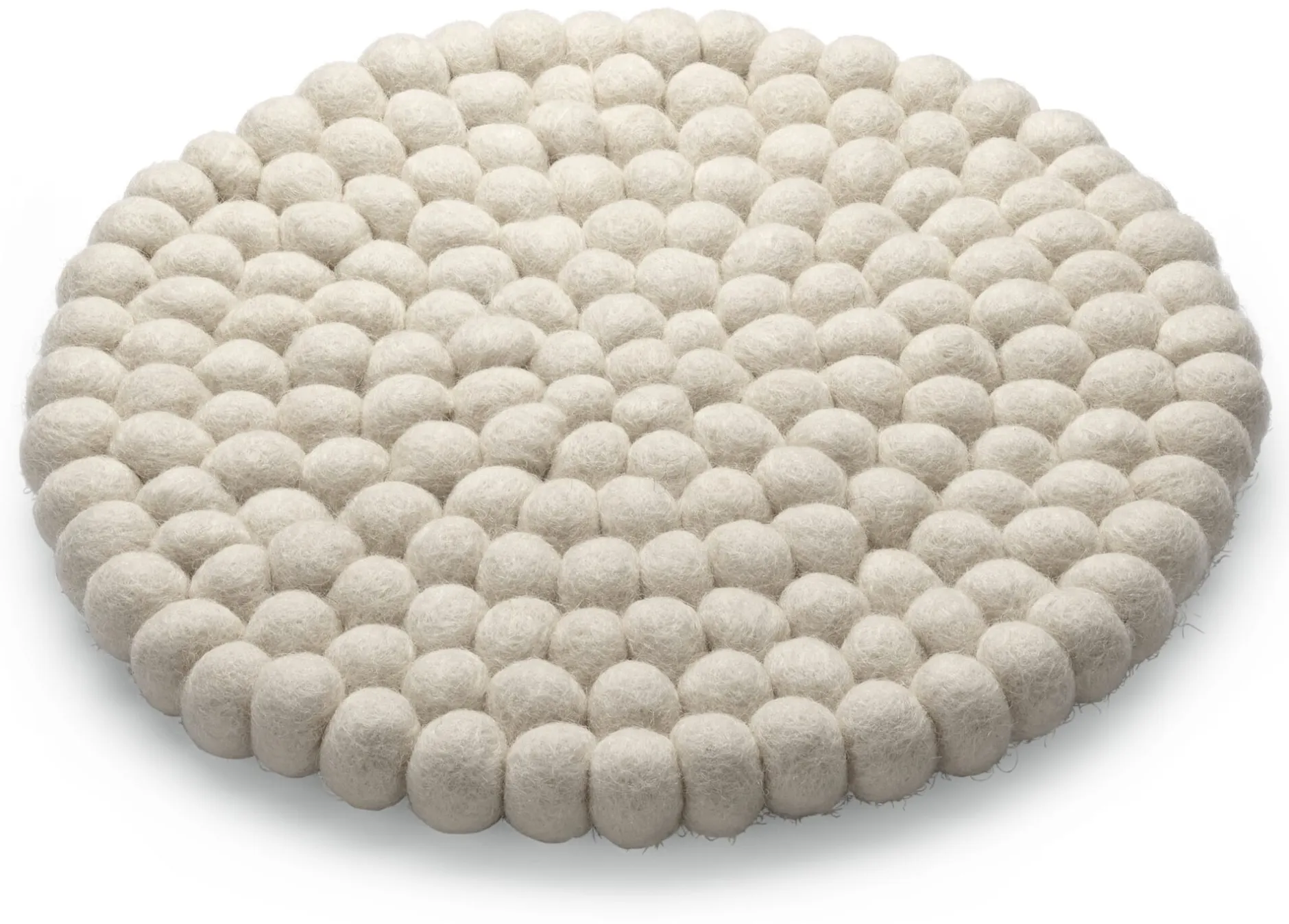 Aus vielen kleinen Filzkugeln entsteht dieser Untersetzer. Dafür werden zunächst von Hand die einzelnen Kugeln aus reiner neuseeländischer Schurwolle gefilzt und in ihre runde Form gebracht und anschließend – ebenfalls in Handarbeit – zusammengenäht. Als Topfuntersetzter schützt die 1,5 Zentimeter starke Filzunterlage zuverlässig die Tischoberfläche. Dass das Material für diesen Einsatz mehr als geeignet ist, verdankt es nicht nur der wärmeisolierenden Eigenschaft der Schurwolle, sondern auch dem Umstand, dass Schurwollfilz zu den am schwersten entflammbaren Naturmaterialien zählt. Er wird daher beispielsweise auch oft auch als Bezugsstoff im Flugzeugbau eingesetzt. Der Filzuntersetzer lässt sich natürlich auch als Unterlage für Vasen, Schalen oder Schüsseln verwenden, um die Tischoberfläche zu schonen. Oder einfach als dekoratives Element.