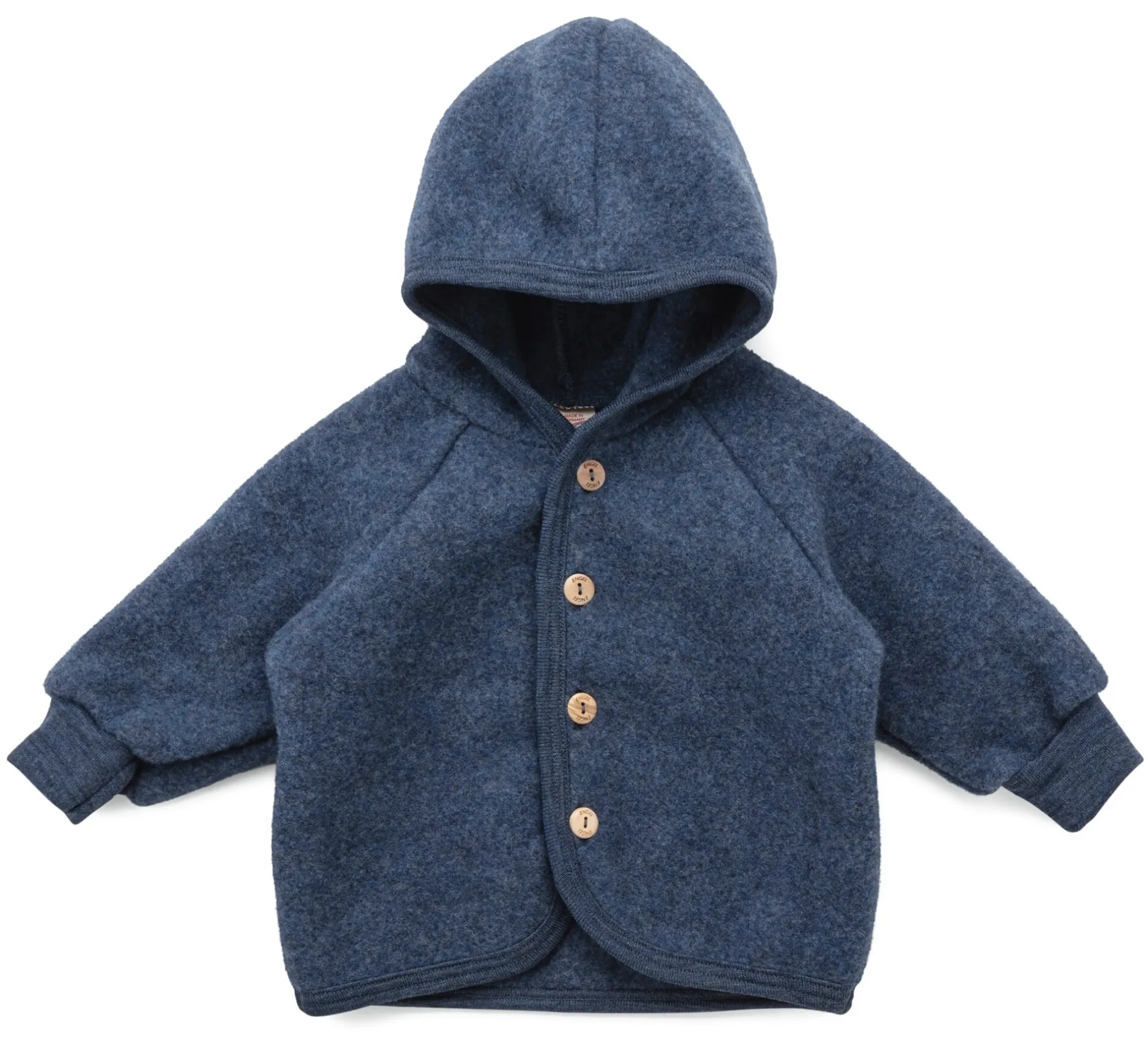 Denn die schmiegsame Merinowolle, die für die Kinder-Jacke verarbeitet wird, wirkt temperaturausgleichend – vor allem da der flaumweiche Fleece mit der charakteristischen angerauten Oberfläche aufwartet. Durch das Anrauen bauschen sich die feinen, gekräuselten Fasern der Merinowolle zu noch größerem Volumen auf und können deshalb noch besser wärmeisolierende Luft einschließen. Dadurch wird die natürliche klimaregulierende Wirkung der Schurwolle ebenso verstärkt wie ihre feine Weichheit. Kindgerecht ist die Jacke leicht überschnitten, in einem geraden, weiten Zuschnitt, sodass Ihr Sprössling ungehindert seinen natürlichen Bewegungsdrang ausleben kann. Bei allem Bewegungsspielraum sichern die verstärkten Säume die Formtreue, während breite Rippenbündchen an den Ärmeln für perfekten Sitz sorgen. Und die Knöpfe aus massivem Olivenholz setzen gleichsam das i-Tüpfelchen auf das Naturmaterial.