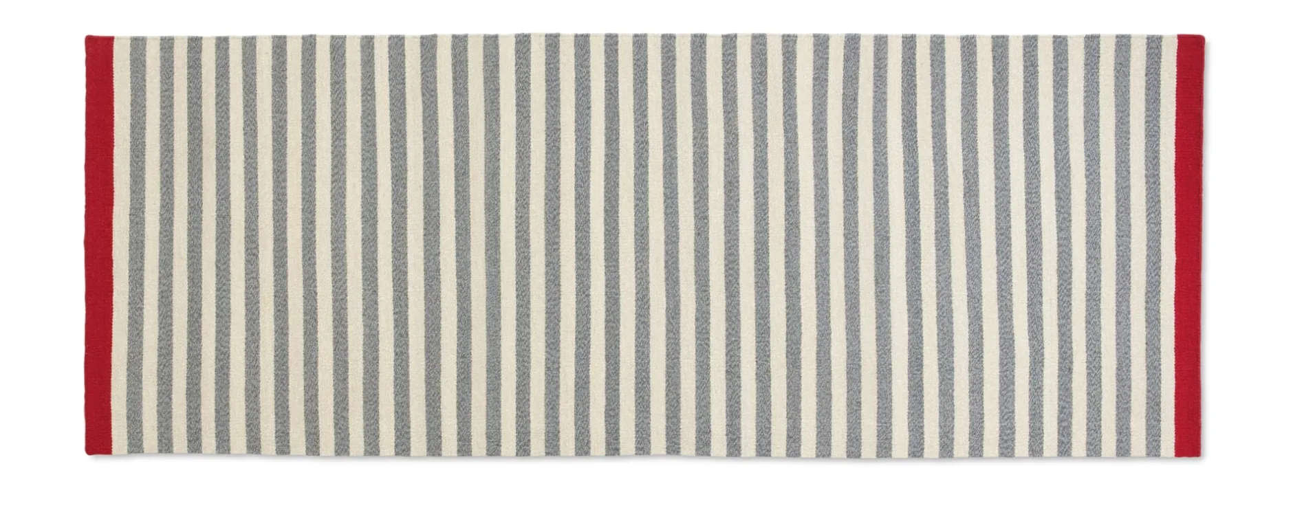 Mustergültig skandinavisch: Das klare Streifenmuster des handgewebten Teppichs fasst die Textildesignerin Lisbet Friis mit leuchtend roten Webabschlüssen ein. Beim dänischen Familienunternehmen Fabula trifft skandinavische Gestaltung auf orientalische Handwerkstechnik – durch die Kelim-Webart bildet der Schussfaden auf beiden Seiten des Teppichs das Muster, sodass dieser beidseitig verwendbar ist. Dank seiner geringen Florhöhe ist ROSEMARY vor allem auch in Durchgangsbereichen und Fluren einsetzbar. Hergestellt in Indien.