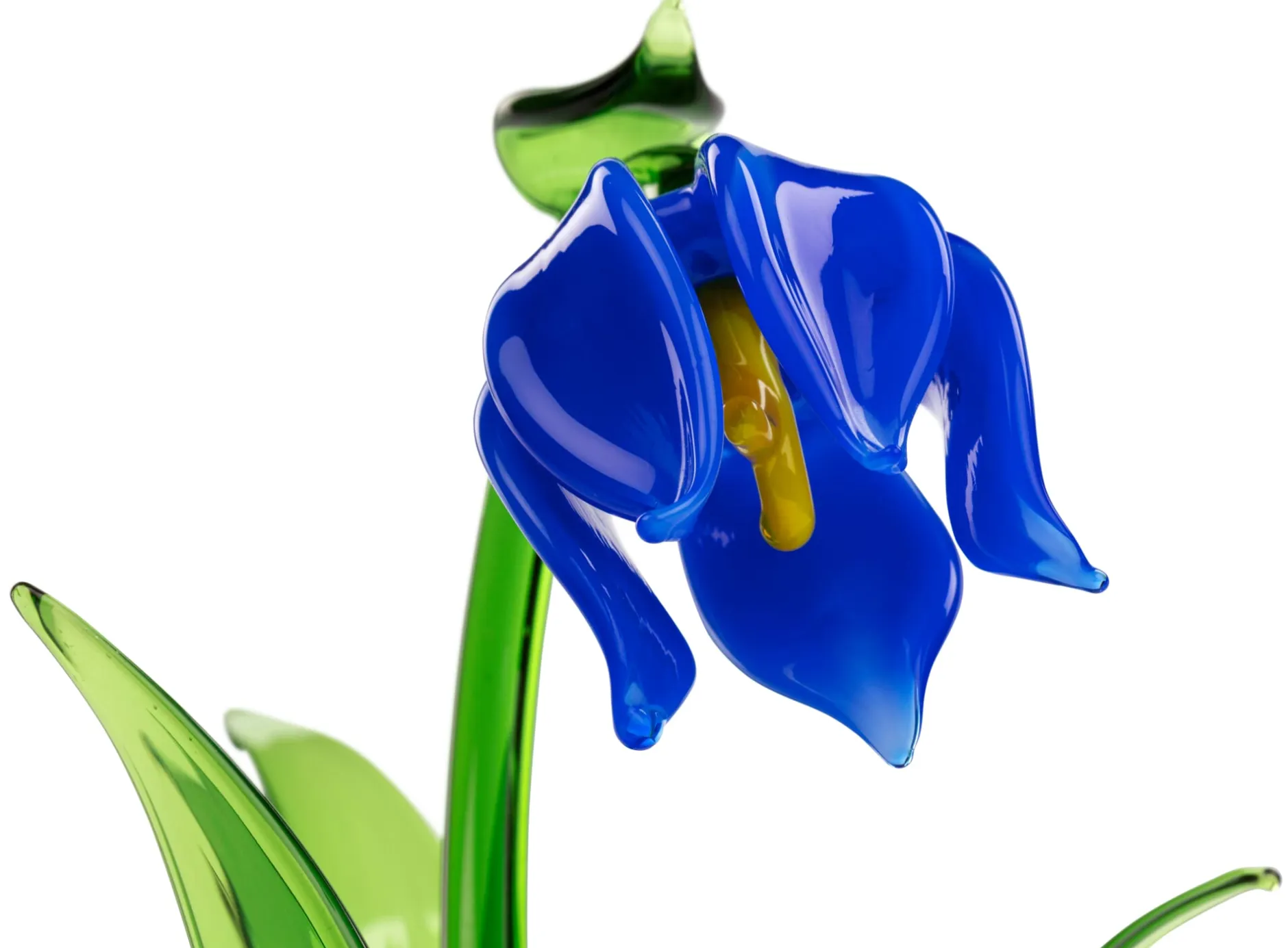 Für diese Arbeiten verwenden die Lauschaer Glasbläser Stäbe aus massivem Farbglas. Die Farbglasstäbe werden in der eigenen Werkstatt zunächst von Hand gezogen, aus diesen Rohlingen modellieren die Glasbläser die Bestandteile der Blume. Stängel, Blütenblätter und Blattwerk werden in der genannten Reihenfolge einzeln bearbeitet und dann zusammengefügt. Damit das gelingen kann, muss das Glas während des gesamten Herstellungsprozesses in einem heißen, zähflüssigen Zustand gehalten werden.