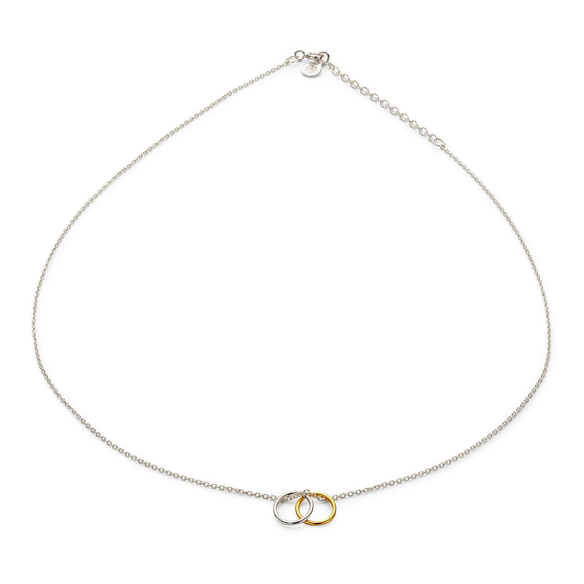 Dezente und sehr filigrane silberne Ankerkette mit zwei mittelgroßen runden Kreisanhängern – einer aus Silber und einer aus vergoldetem Silber. Die Kette ist längenverstellbar und daher immer passend.