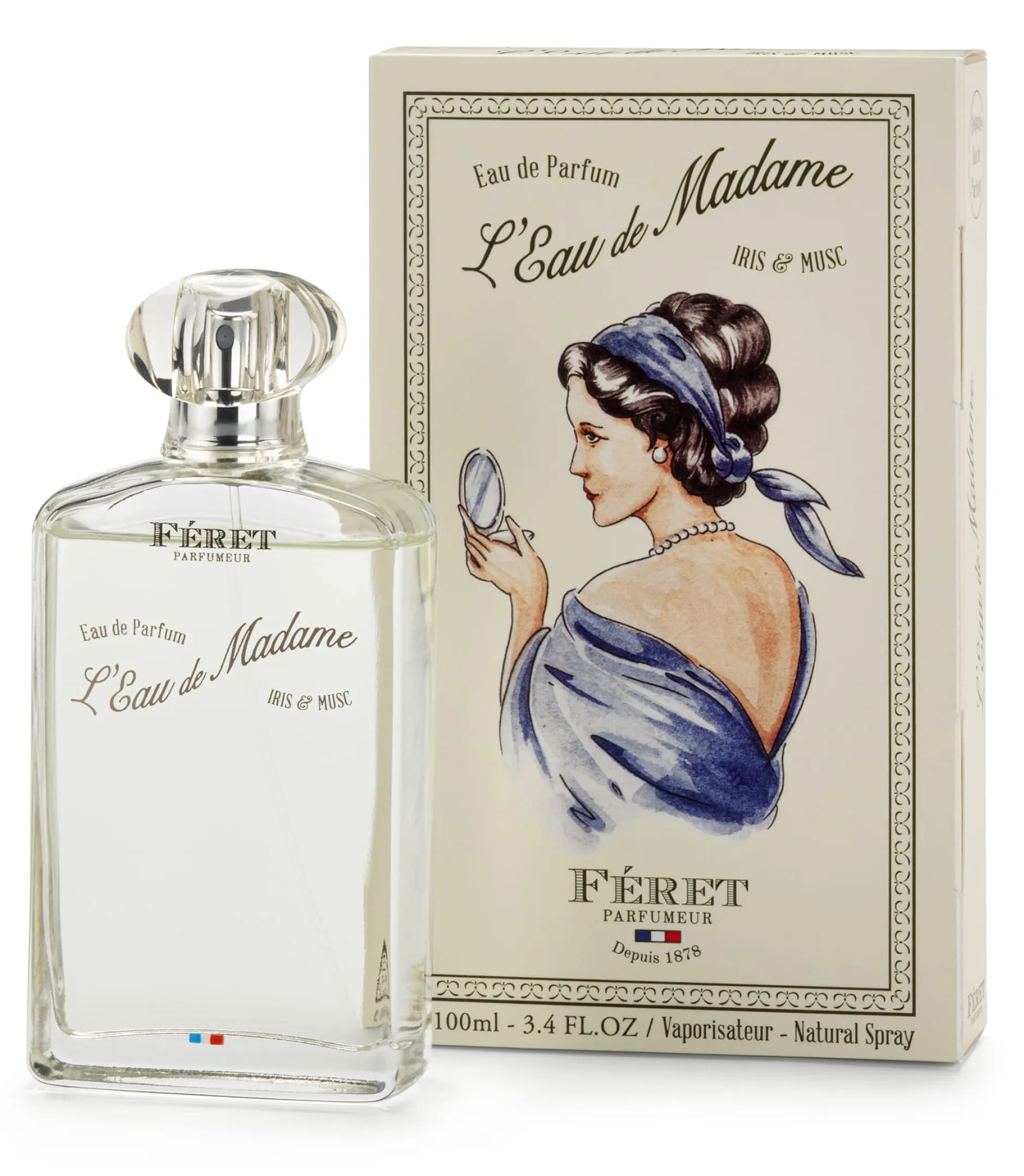 Die Gärten des Familienanwesens in Maine Gaillard inspirierten Féret zu diesem eher leichten Parfüm. Zitrische, blumige und holzige Noten prägen den frischen, würzig-blumigen Duft des Eau de Madame Iris & Musc. Es eröffnet mit Bergamotte, Mandarine, Orange und rosa Pfeffer. In der Herznote entfalten sich blumige Aromen von Jasmin, Iris und Veilchen auf der holzig-warmen Basis aus Sandelholz, Tonkabohne und weißem Moschus.