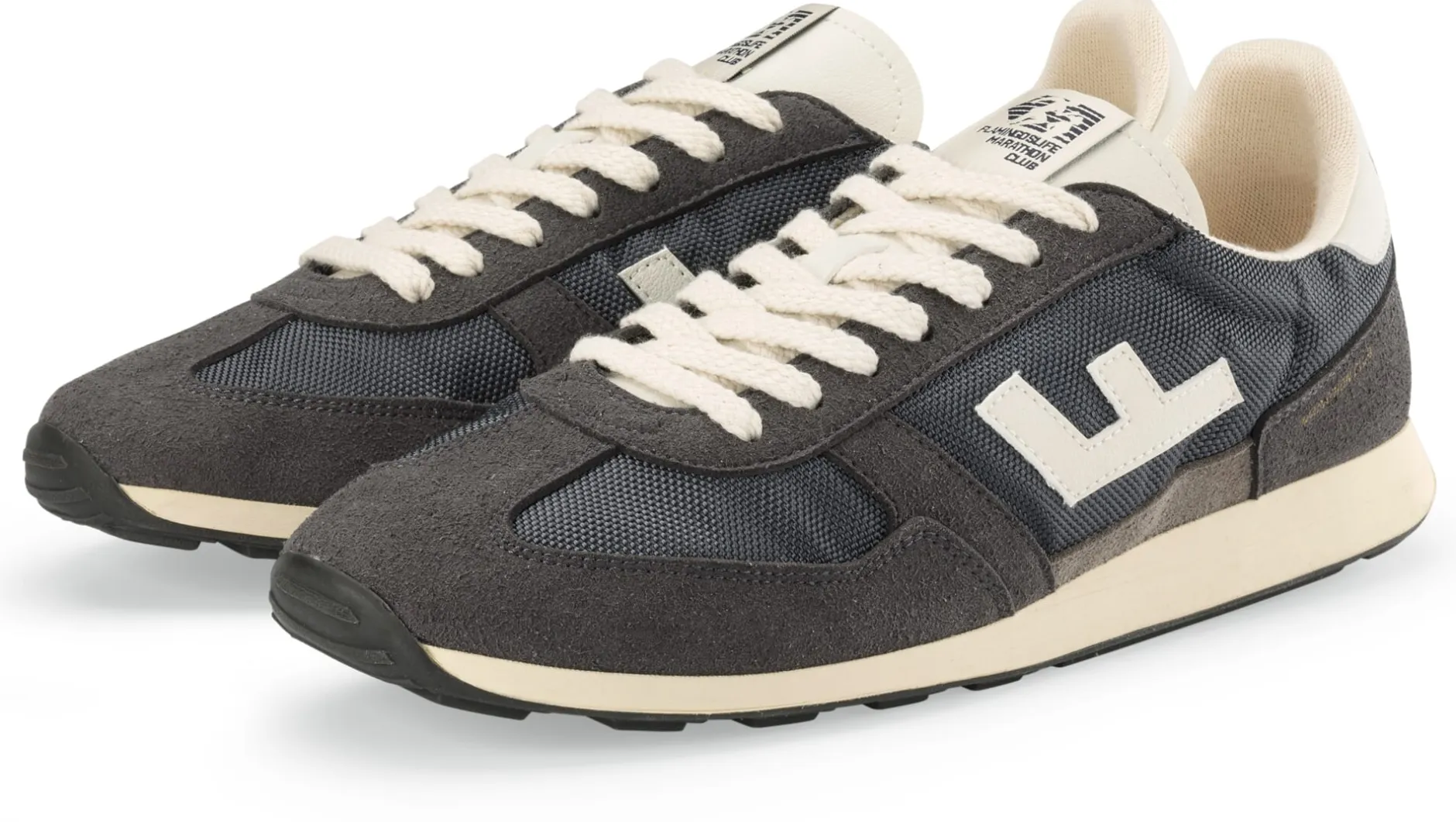 Dieser Sneaker macht mit seinem klassischen Laufschuh-Design nicht nur optisch Eindruck, er überzeugt auch mit seinen inneren Werten. Für das Obermaterial verwendet Flamingos Life Polyamid und Polyurethan sowie ein Mesh aus recyceltem Polyester. Die Einsätze aus markant strukturiertem Gewebe können materialbedingt Falten werfen, was keinen Qualitätsmangel darstellt. Das Futter besteht aus Viskose, Recycling-Polyester, Polyamid und Polyurethan. Die Decksohle ist aus Viskose und Recycling-Polyester. Sie ist herausnehmbar und lässt sich bei Bedarf durch eigene Einlagen ersetzen. Die rutschfeste, leicht profilierte Gummilaufsohle bietet hohen Tragekomfort auf Schritt und Tritt und guten Grip auf fast jedem Untergrund. Kurzum: ein bequemer Sneaker, mit dem Sie auch auf langen Strecken – nicht umsonst heißt das Modell Marathon – leichtfüßig unterwegs sind.