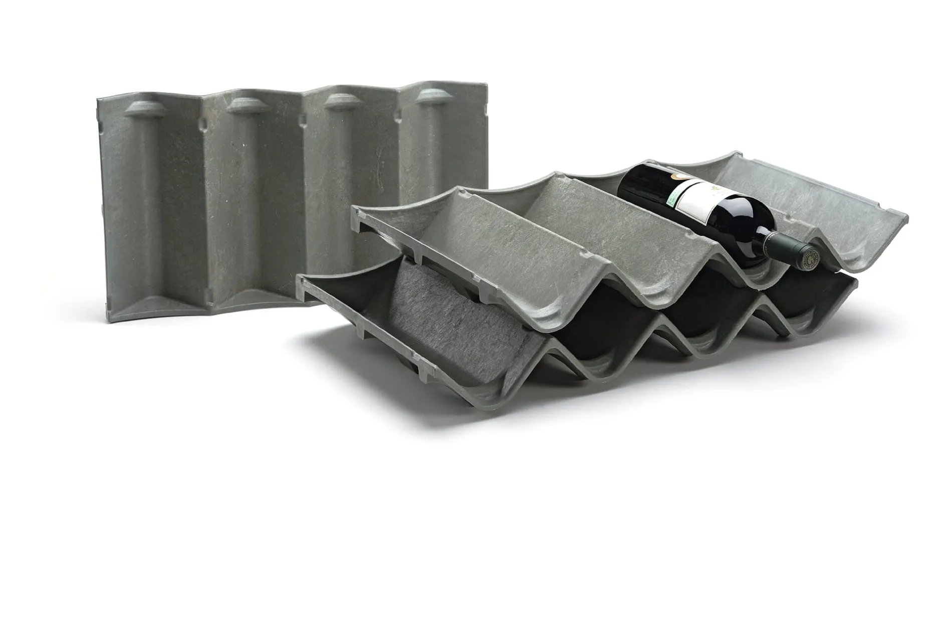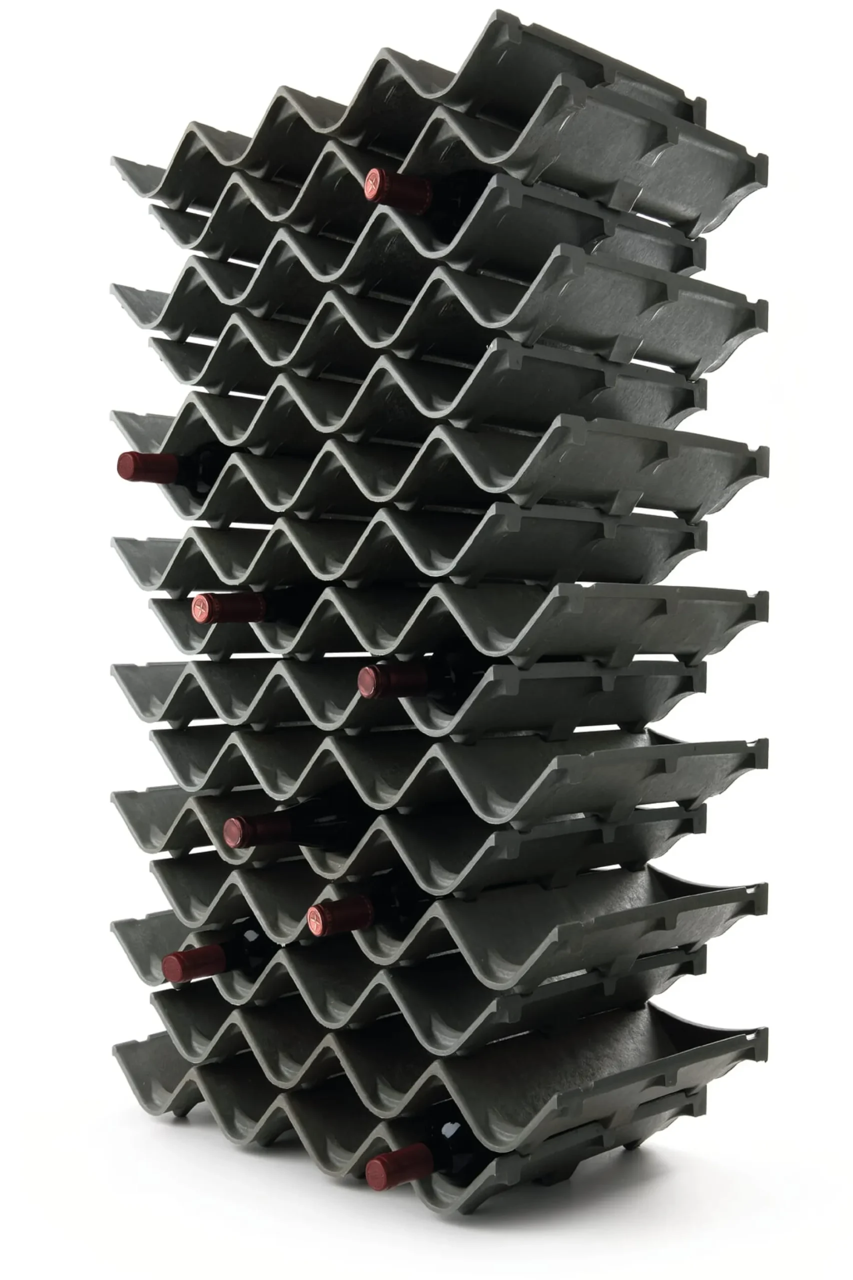 Formschön und funktional: Dieses Flaschenregal ist ein überzeugendes Beispiel dafür, dass die einfachsten Lösungen oft die besten sind – und die preiswertesten. Es besteht aus nur einem Bauteil, das werkzeuglos und ohne jegliche verbindende Elemente gestapelt werden kann. Das Regal ist absolut stabil, nimmt an seinem Standort nur wenig Raum ein und ist jederzeit erweiterbar. Für Balkon, Keller oder Küche.