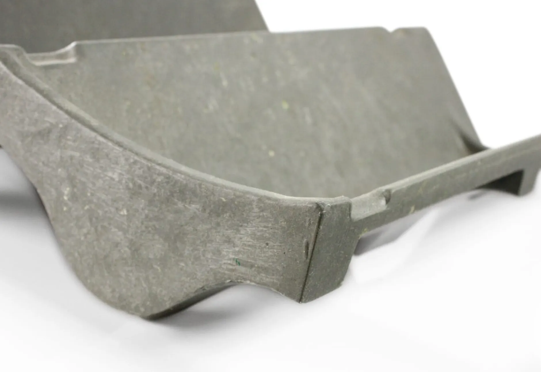 Die Elemente sind aus Syntrewood® hergestellt, einer Mischung aus recycelten thermoplastischen Kunststoffen und aufbereiteten Papierverbundstoffen mit einem hohem Anteil an Zellulosefasern. Das Material wird vornehmlich im Wasser- und Gartenbau eingesetzt: Es ist 100% außentauglich, formstabil und äußerst robust. Unebenheiten in der Oberfläche, Recyclateinschlüsse sowie leichte Farbabweichungen sind dem Herstellungsprozess geschuldet und entsprechen dem funktionalen Charakter dieses Industriewerkstoffs.