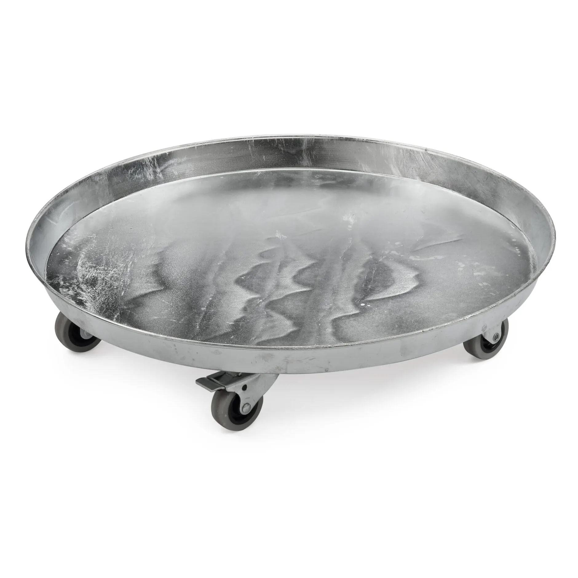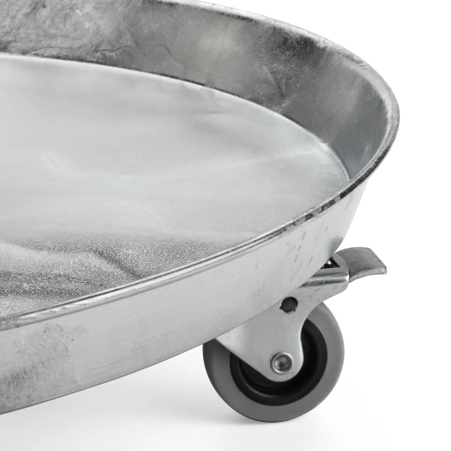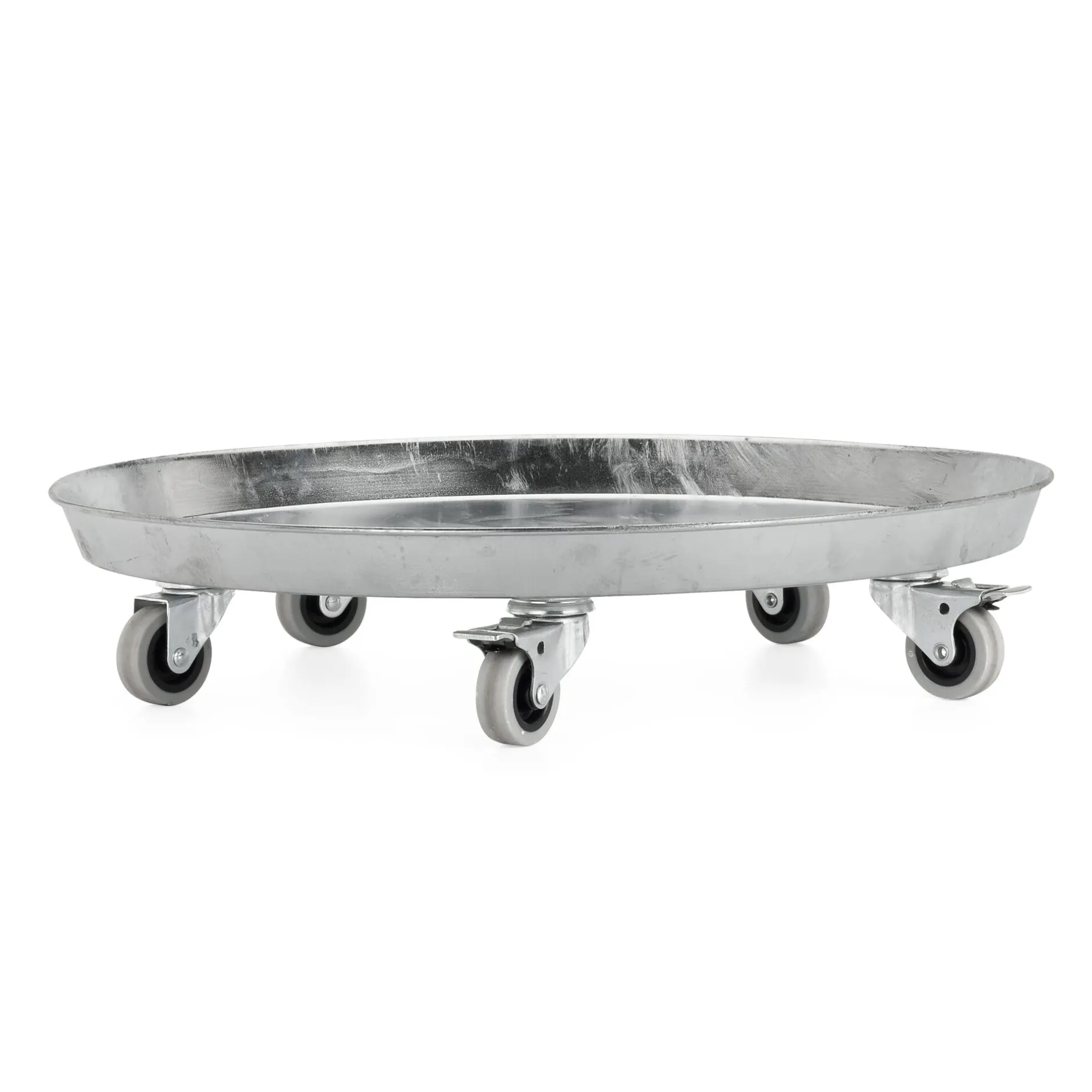 Aus feuerverzinktem Stahl und ausgestattet mit fünf gummibereiften Apparaterollen (Ø 5 cm), zwei davon feststellbar.