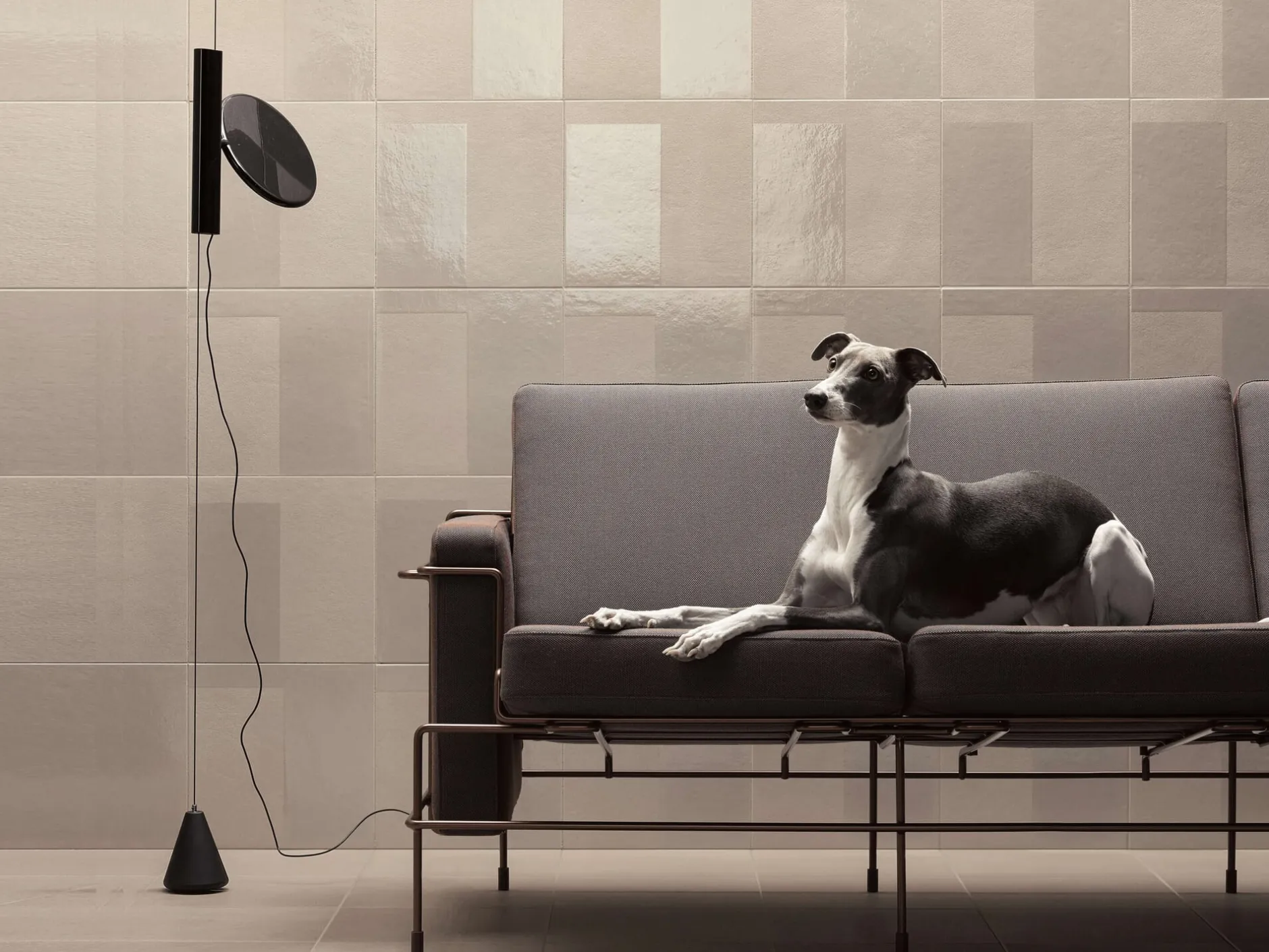 Hommage von Konstantin Grcic an den Altmeister des Produktdesigns: Inspiriert von der ikonischen Grundform der Leuchte Parentesi von Achille Castiglioni, trägt die OK LAMP einen schön geformten Leuchtenkopf mit zeitgenössischer, energiesparender und lichtstarker LED-Technik. Wie bei ihrem Vorbild von 1970 ermöglicht ein zwischen Decke und Boden mithilfe eines Gewichts gespanntes und durch ein Stahlrohr gezogenes Stahlseil die Höhenregulierung des um 360 Grad schwenkbaren Leuchtenkörpers. Der Leuchtenkopf ist aus lackiertem Aluminium, der Leuchtenkörper aus aluminiumbeschichtetem Polyamid gefertigt. Über einen Schalter mit Soft-Touch-Technologie dimmbar.